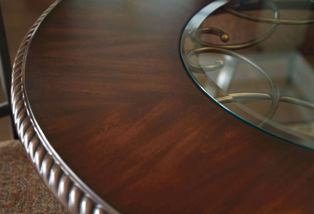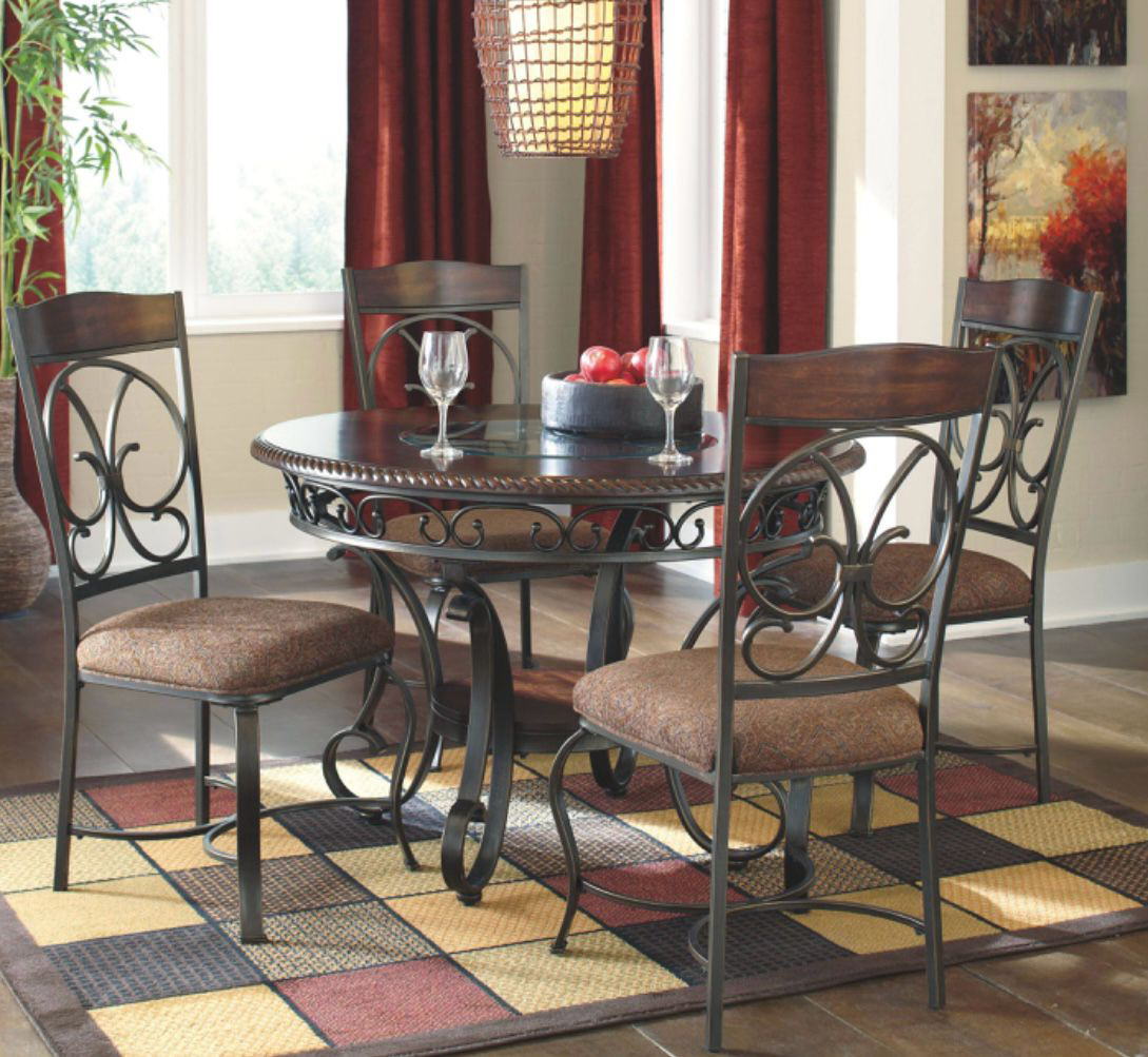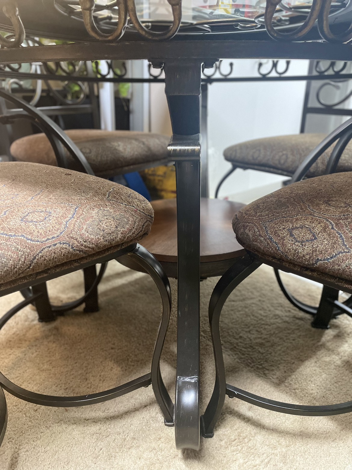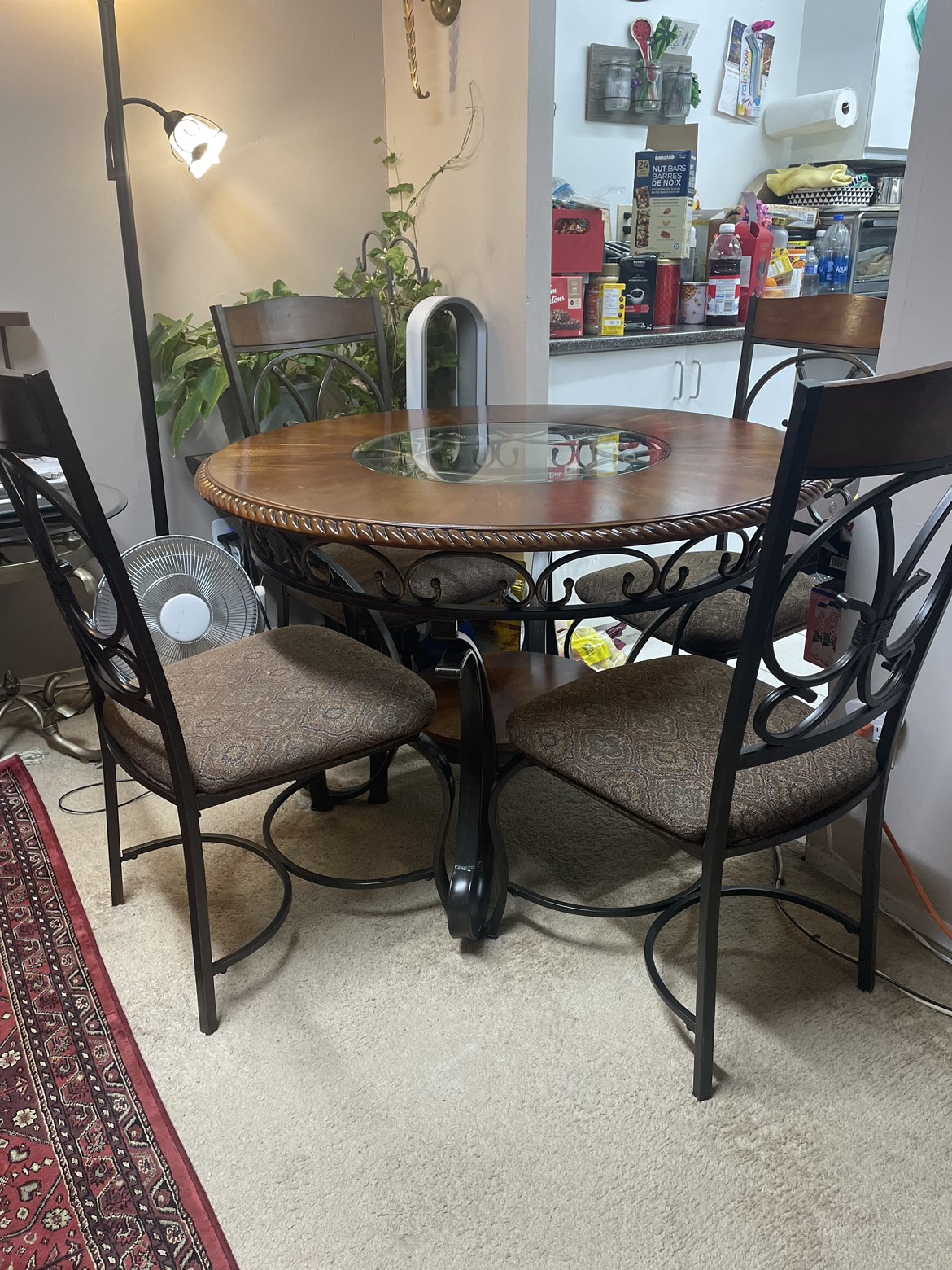 A 4 seat 44” round dining table from Ashley. It’s only a couple years old, I’m only selling it becausey it’s too small for my family. Materials are wood and metal. It has a couple minor scratches and rings which can be easily fixed with some products. Comes with the table and all 4 chairs. It’s a great sturdy table. Pickup only. Serious buyers only !! Note: the first couple pictures are from online for reference only.