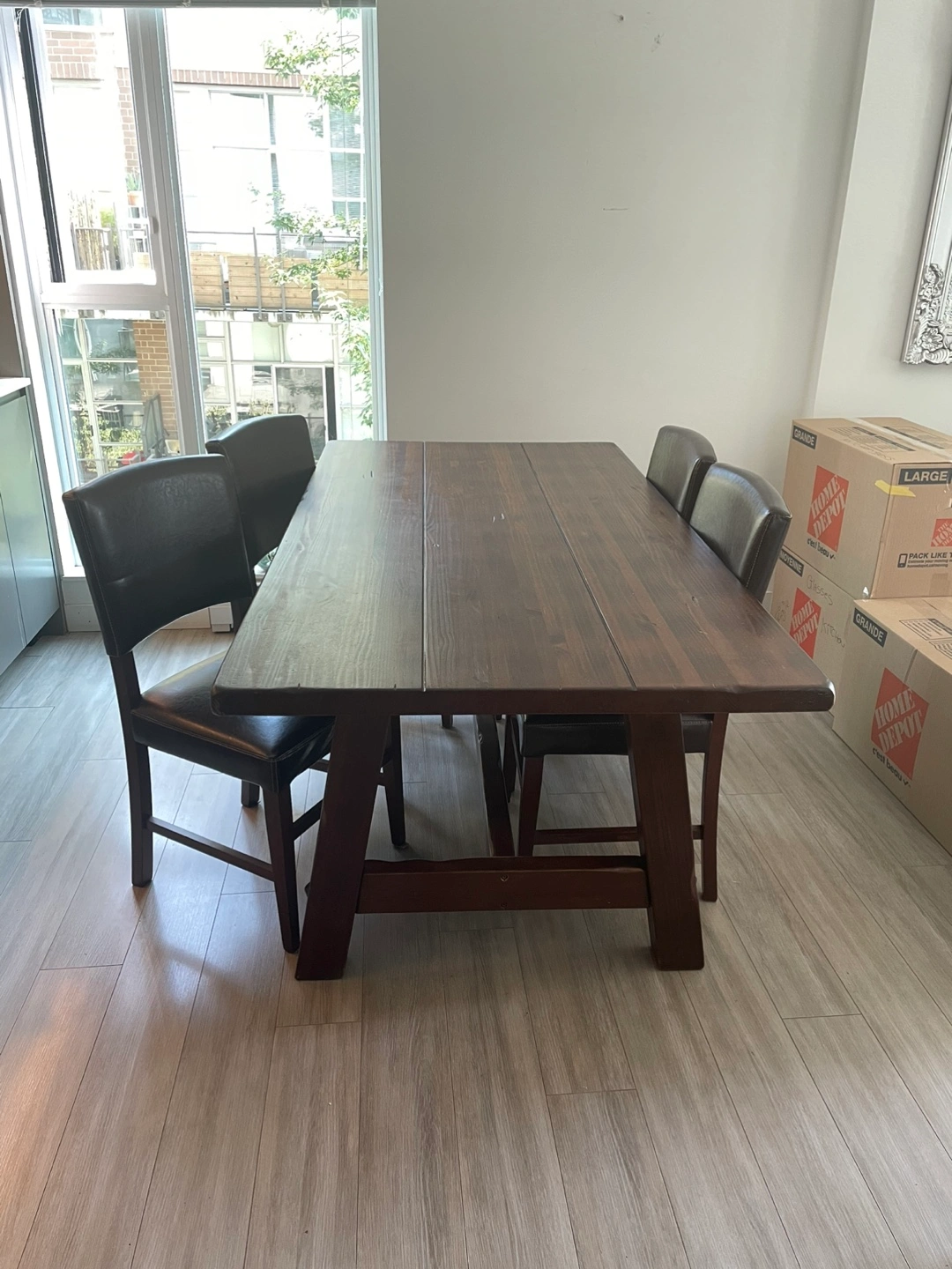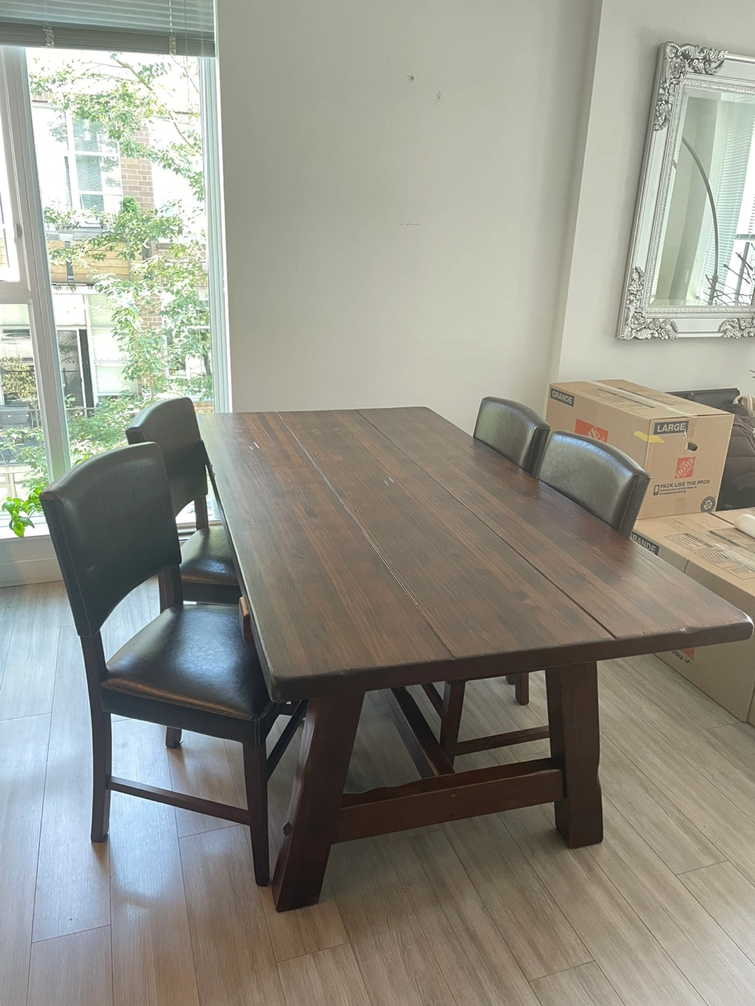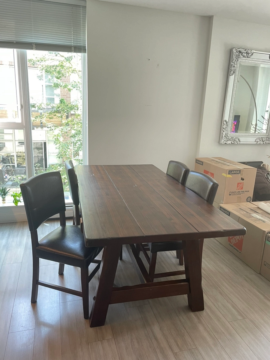 Add warmth and character to your space with this beautiful solid mango wood dining table. Imported from Thailand, this piece combines craftsmanship with convenience—delivering in a flat pack for easy transport and assembly. Its generous size (37” W x 72” L x 30” H) comfortably seats six and makes it the perfect centerpiece for family meals or gatherings. A timeless addition to any home.