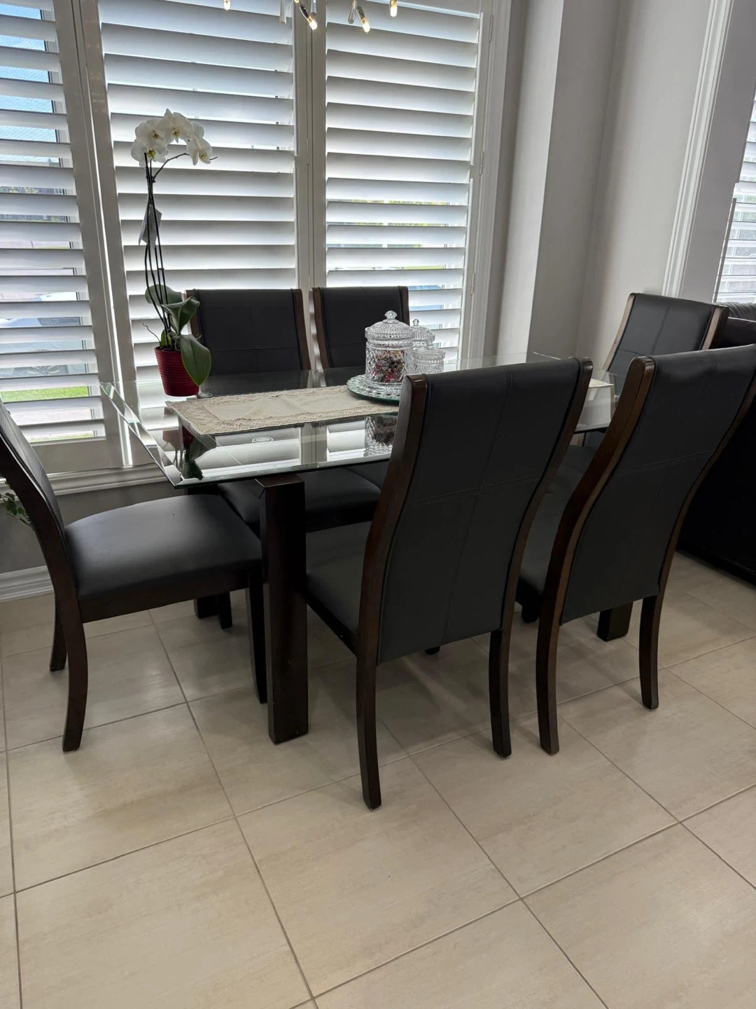 Ikea Black Dining Table with 4 Grey Velvet Chairs