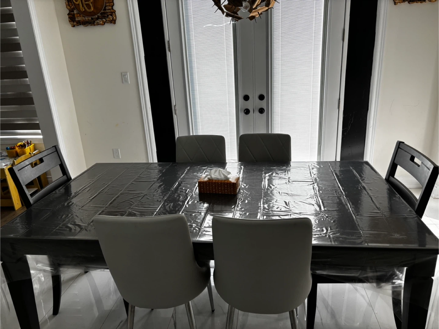 Dining Table with 6 White Chairs