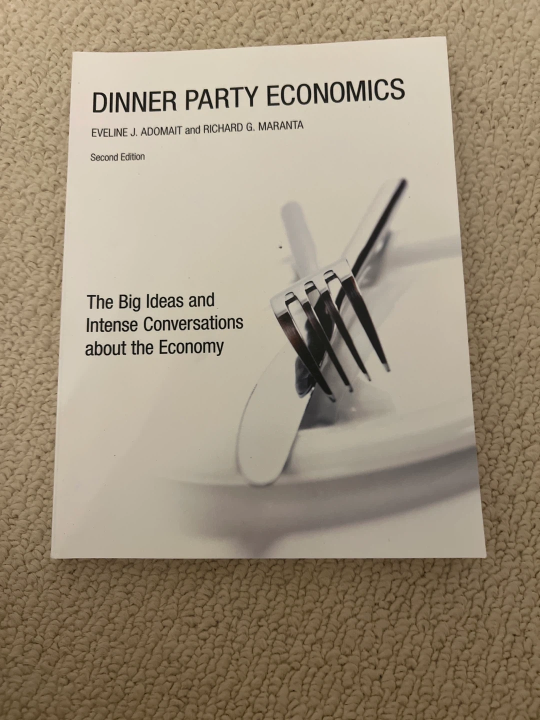 Selling a copy of 'Dinner Party Economics' by Eveline J. Adomait and Richard G. Maranta! It's the Second Edition, perfect for diving into the big ideas and intense conversations about the economy