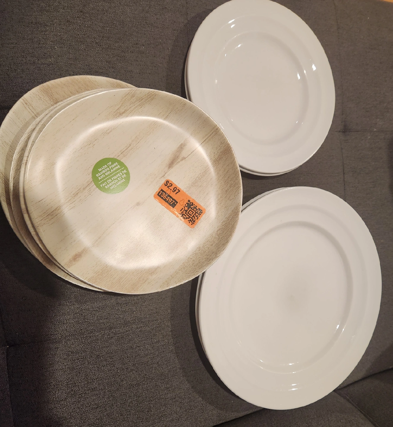 --4 Bamboo Salad plates: BRAND NEW --3 Large Plates and 3 smaller plates: Barely used, excellent condition, no chips. Coming from a smoke/pet/pest free home. $7 total for everything. Cash only. Pickup only. CHECK OUT MY OTHER ADS!!