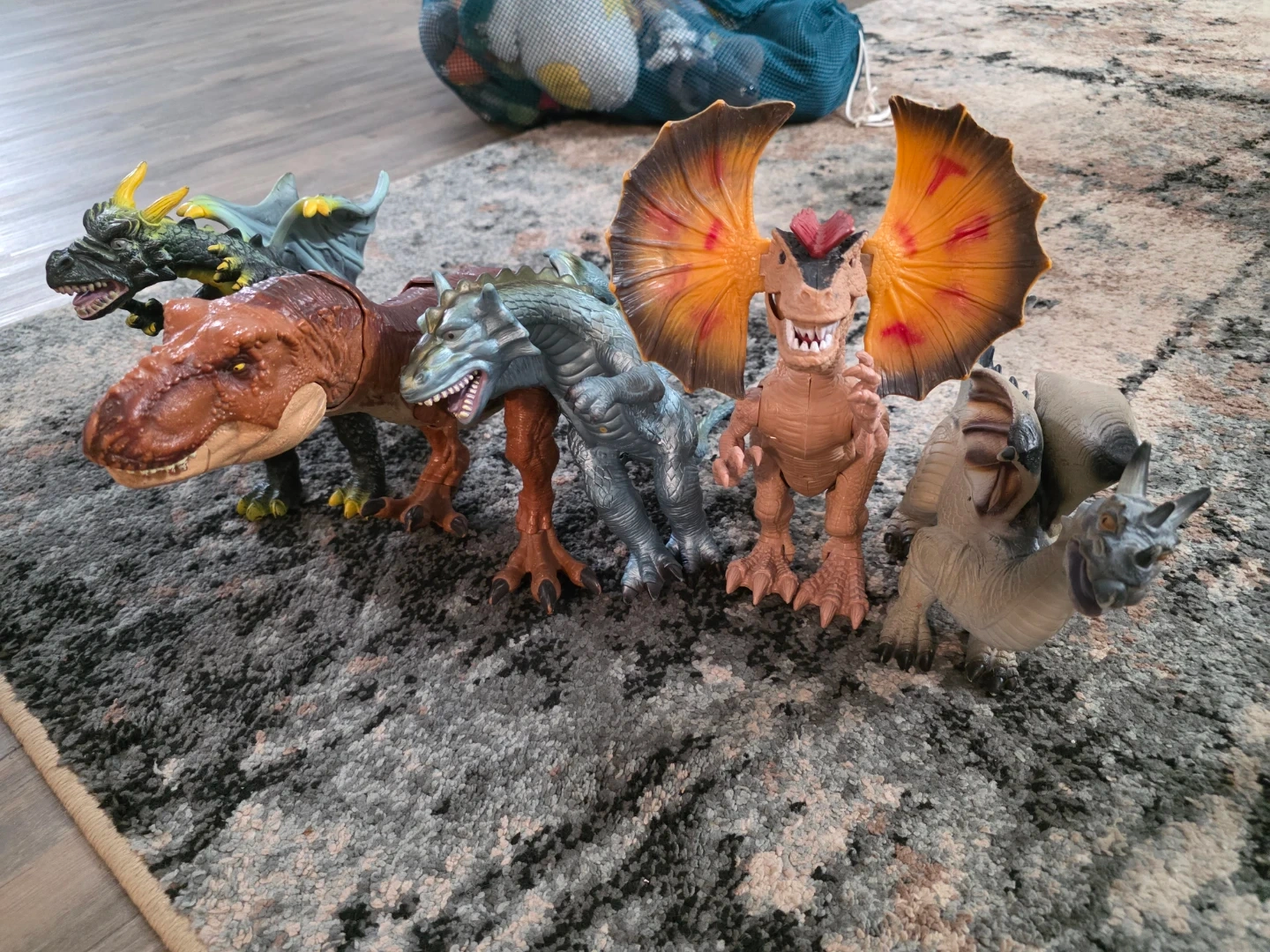 15Selling a set of 5 dinosaur action figures. They're in good condition and ready for a new home! Perfect for any dinosaur enthusiast or collector