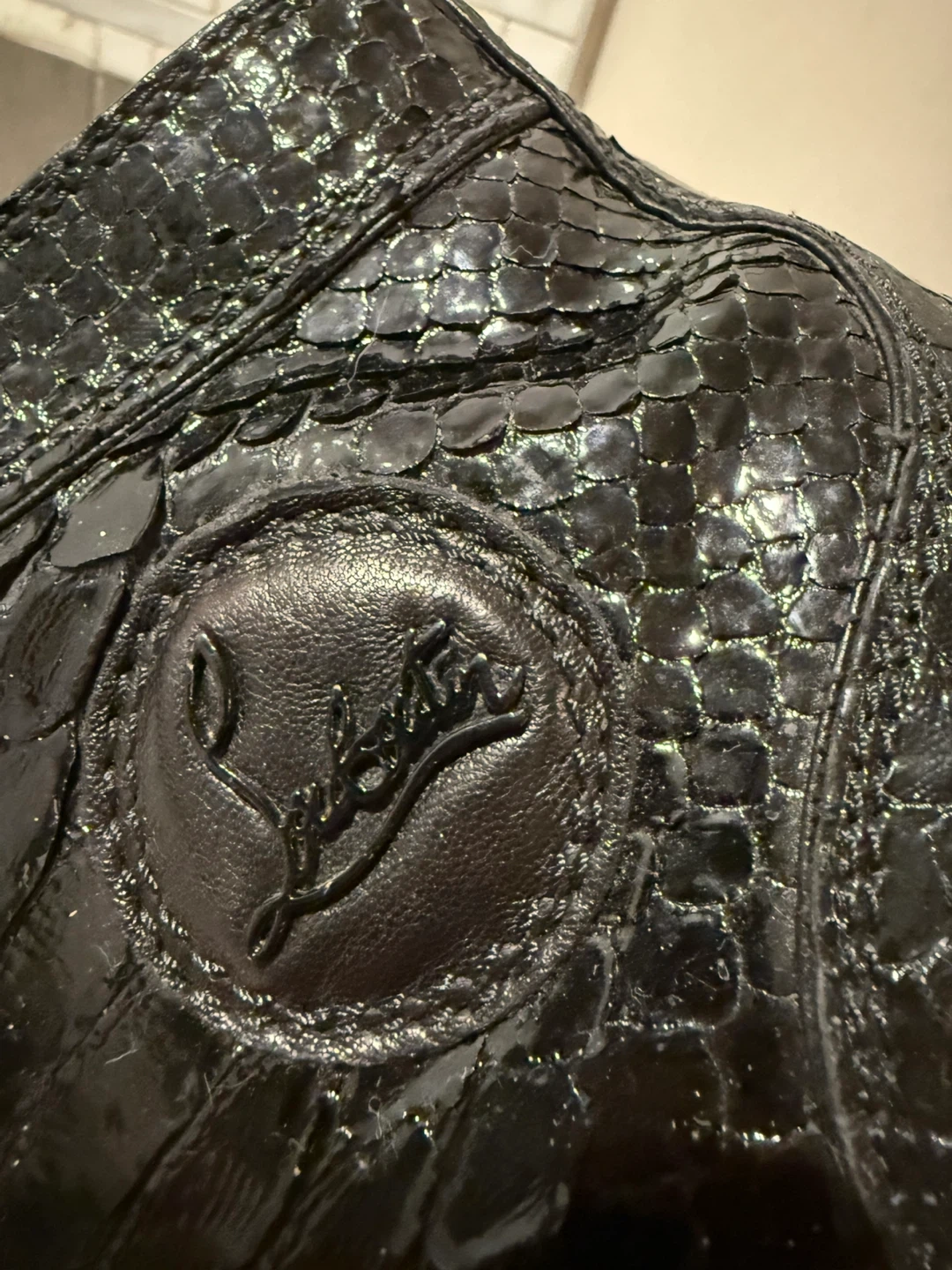 Black high-top sneakers with a python-embossed finish. Size 45. Made in Italy.
