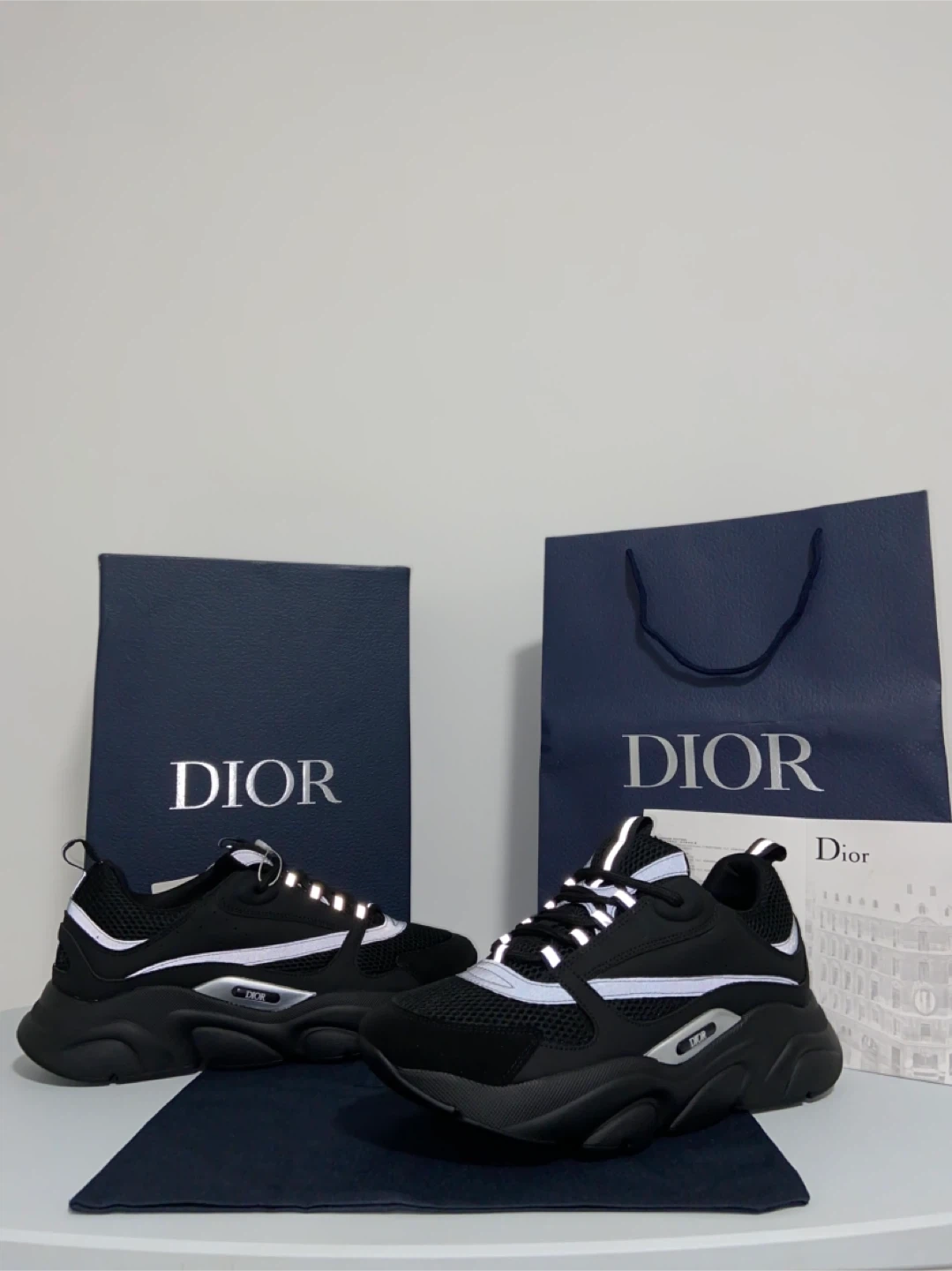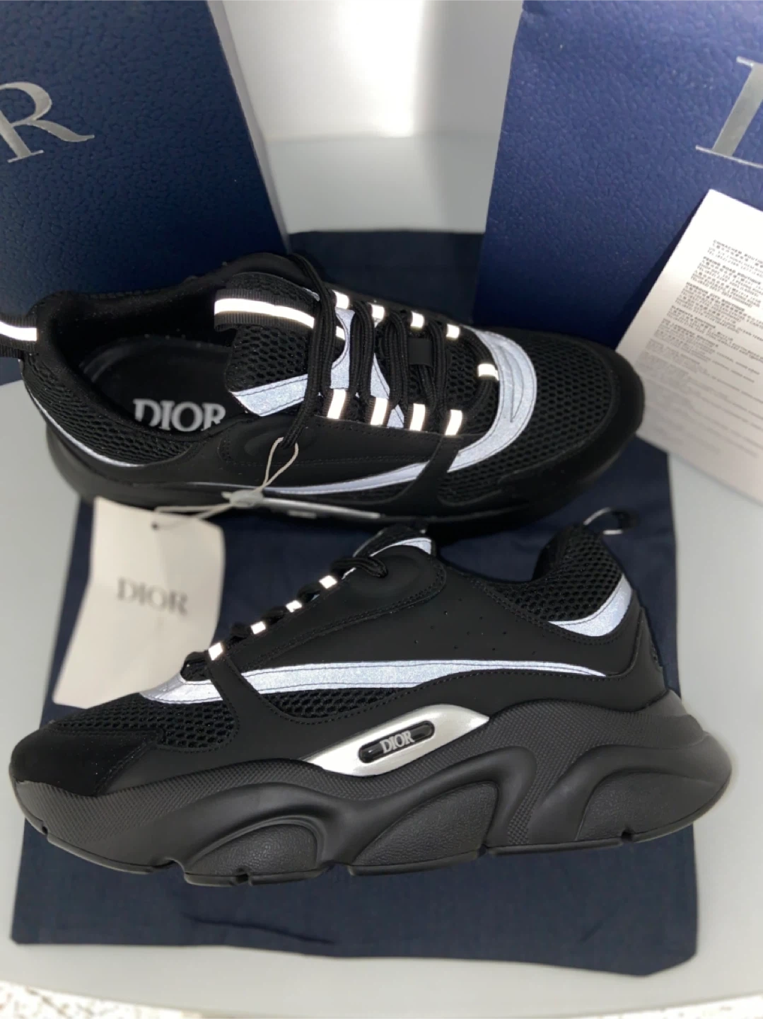 60Selling a pair of Dior B22 sneakers in size US 8.5 These stylish sneakers feature a sleek black design with reflective accents. They come with the original box and are in great condition. Perfect for adding a touch of luxury to your everyday look!