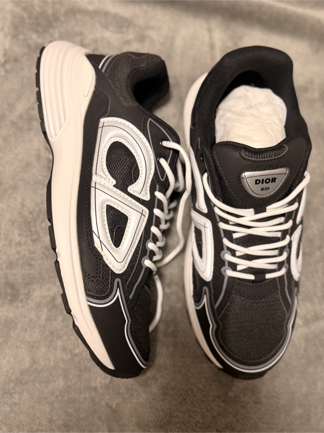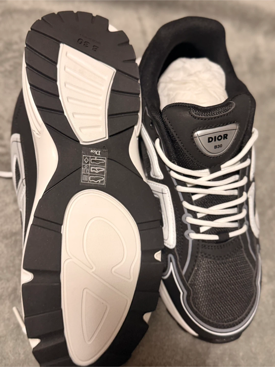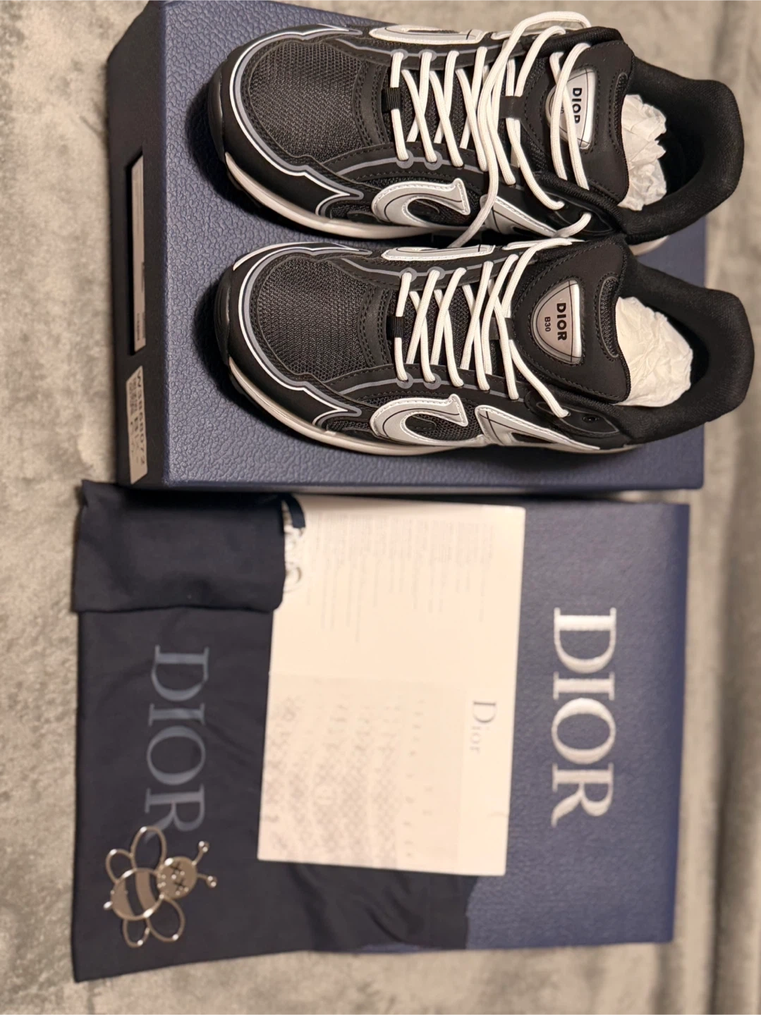 Selling a pair of Dior B30 sneakers in black microfiber mesh! They come with the original box and Dior paper bag. The size is 43.