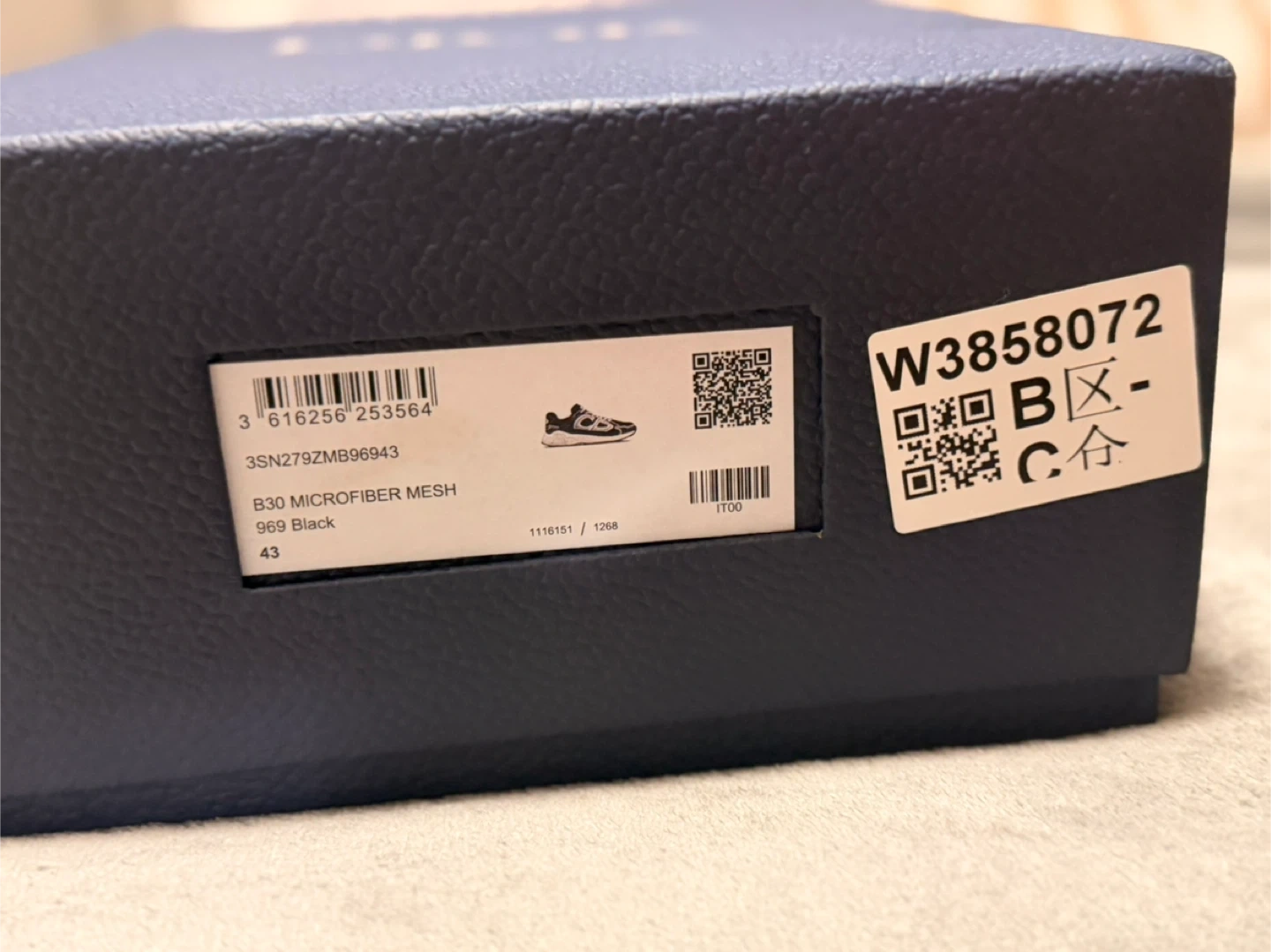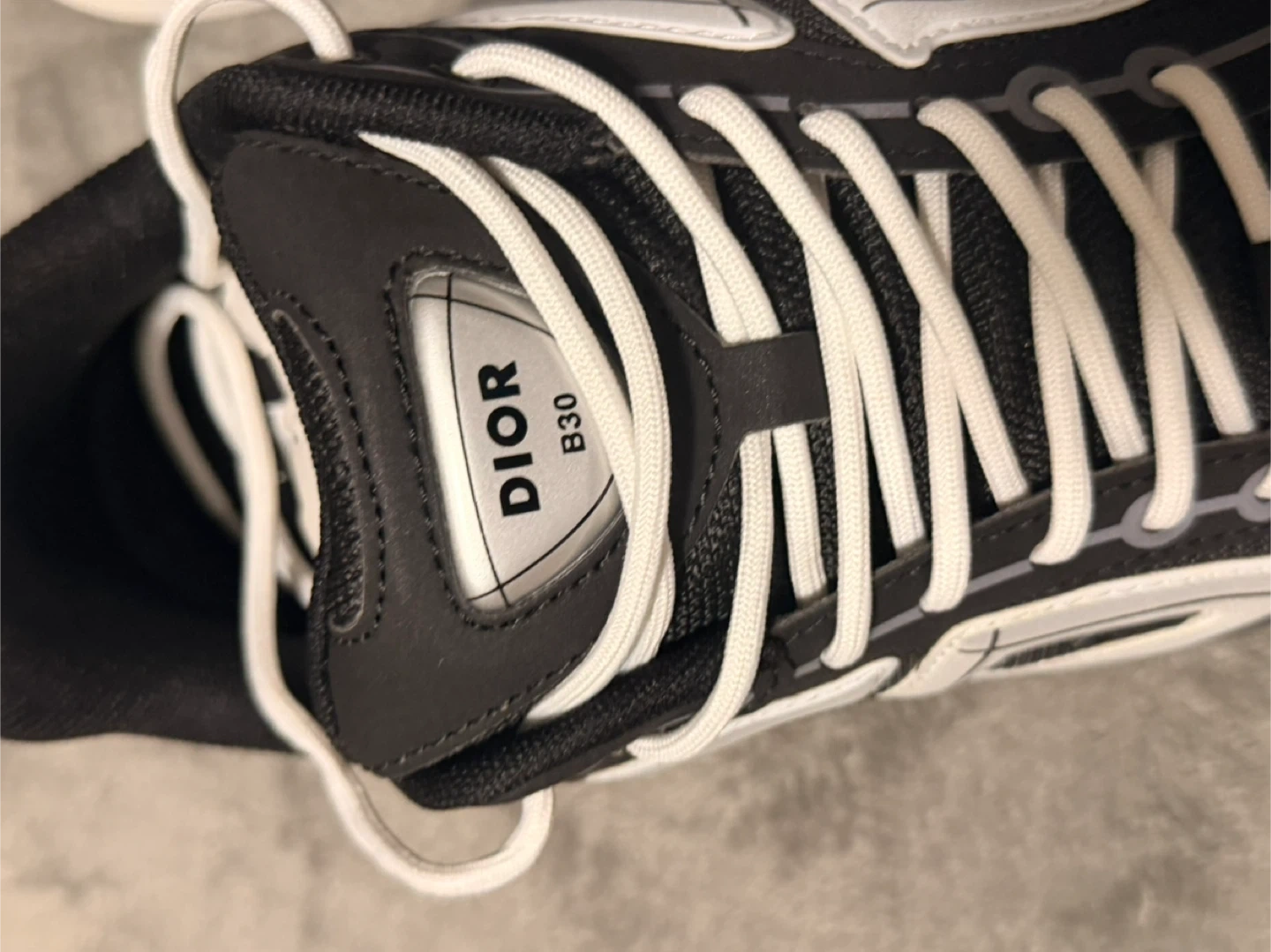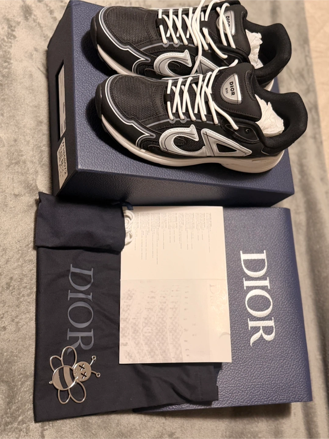 Selling a pair of Dior B30 sneakers in black microfiber mesh! They come with the original box and Dior paper bag. The size is 43.