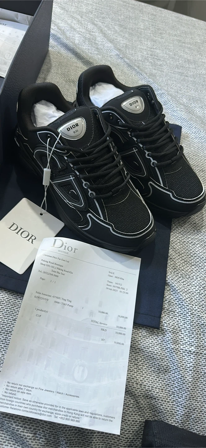 10Selling a pair of Dior B30 sneakers in black, size 41,43. These are in excellent condition and come with the original box. Stylish and comfortable, perfect for everyday wear!