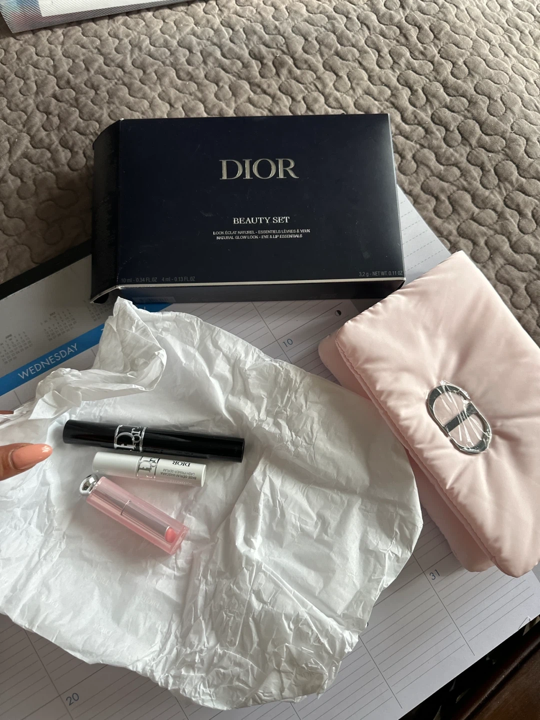 510Selling a Dior Beauty Set which includes lip and eye essentials for a natural glow look! The set comes with a mascara, lip serum and a lip glow. It also includes a pink Dior pouch to keep everything together! The box contains 10 ml - 0.34 FL.OZ and 4 ml - 0.13 FL.OZ products and the lip glow is 3.2 g NET WT. 0.11 OZ