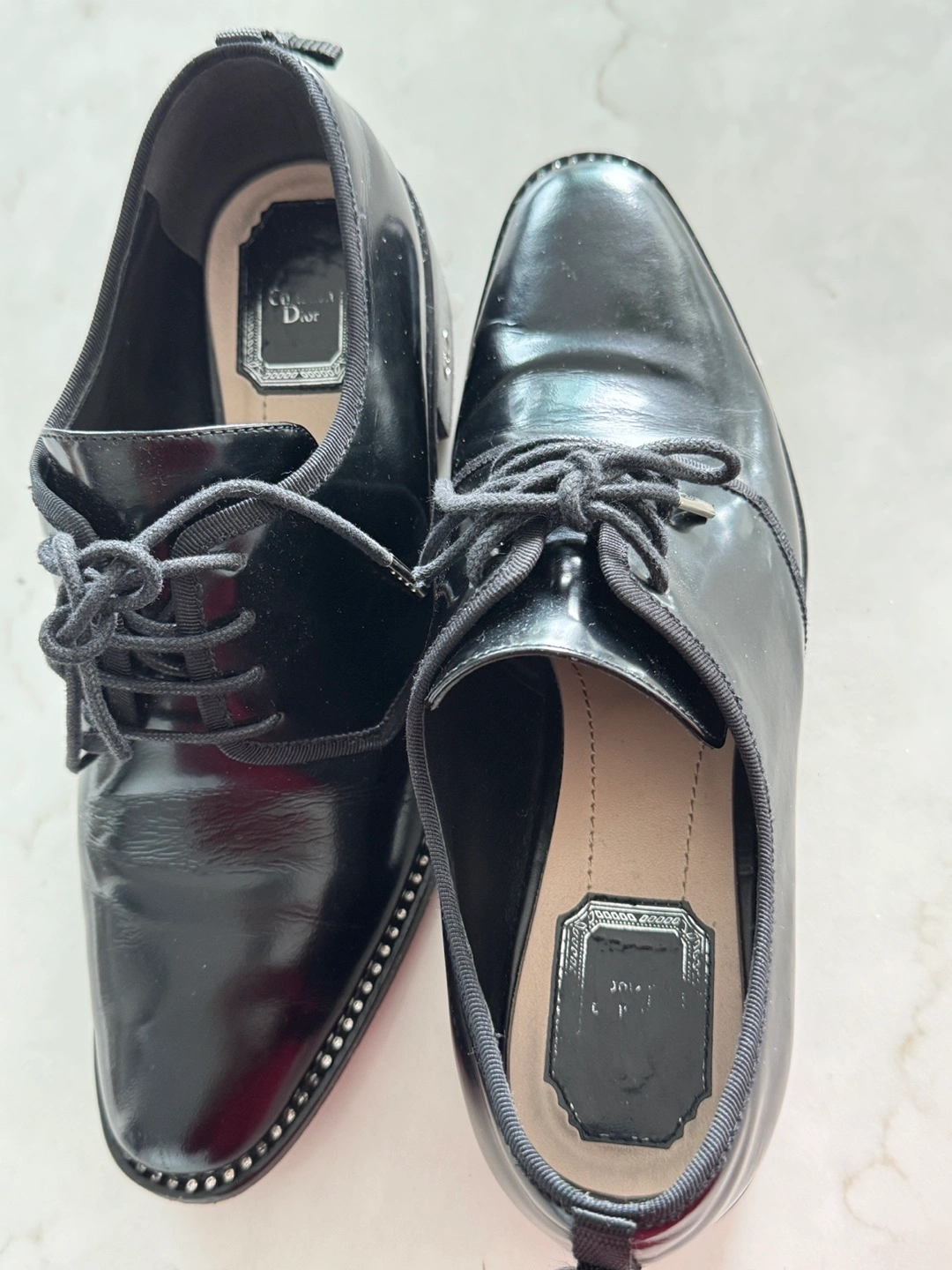 Selling a pair of Dior black leather oxford shoes. They are in good condition with some signs of wear. The size is 37 (European). Made in Italy