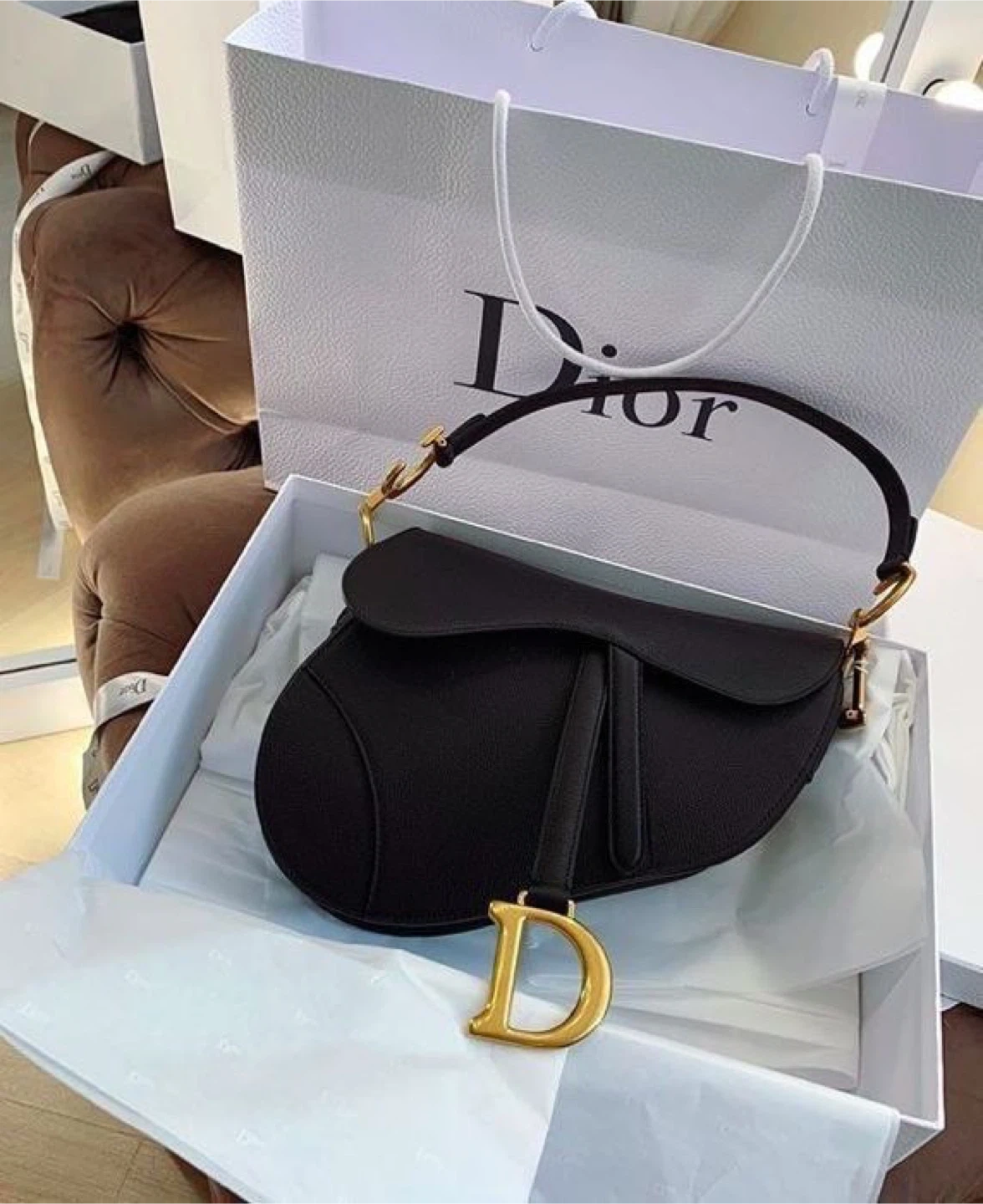 10Selling a beautiful Dior Saddle Bag in black! It comes with the original box. A timeless piece to add to your collection