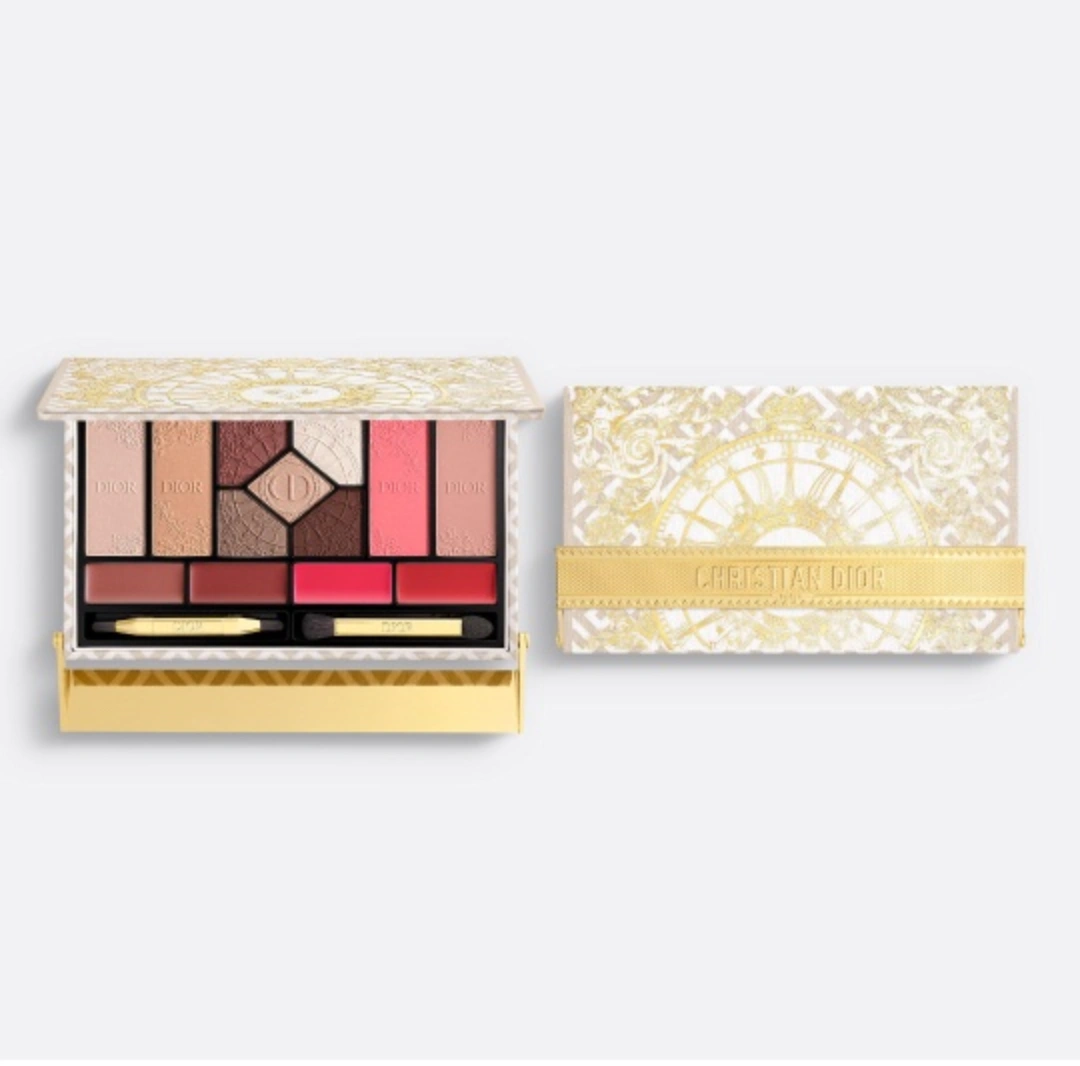 Original price on website 180$ + tax. its sold out everywhere. Dior is celebrating the holiday season with the release of a limited-edition multi-use makeup palette, featuring both the case and powders decorated with the royal motif created by Pietro Ruffo, artist and friend of the House of Dior. Lift the golden clasp engraved with CHRISTIAN DIOR to open the palette and reveal the different shades: - FACE MAKEUP: 4 shades of Rouge Blush powder, the long-wearing couture blush infused with floral skincare. Blush and highlighter finishes. - EYE MAKEUP: 5 shades of Diorshow 5 Couleurs powder, the high-color and longwear eyeshadow with a creamy texture. - LIP MAKEUP: 4 shades of Rouge Dior, the long-wear couture color lipstick infused with floral lip care. Satin finish.