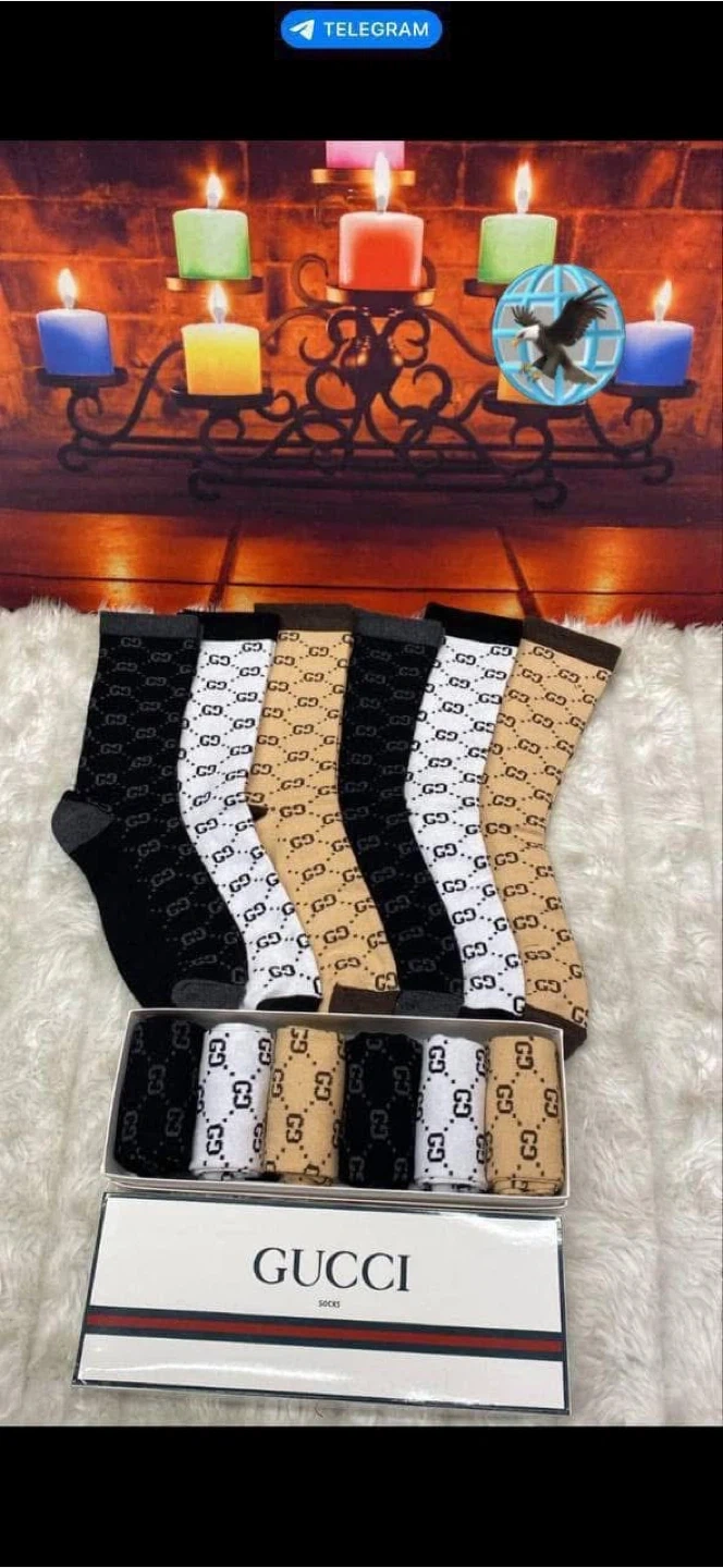 60Selling a set of Dior and Gucci socks. The set includes a variety of colours and patterns. They come in a box.