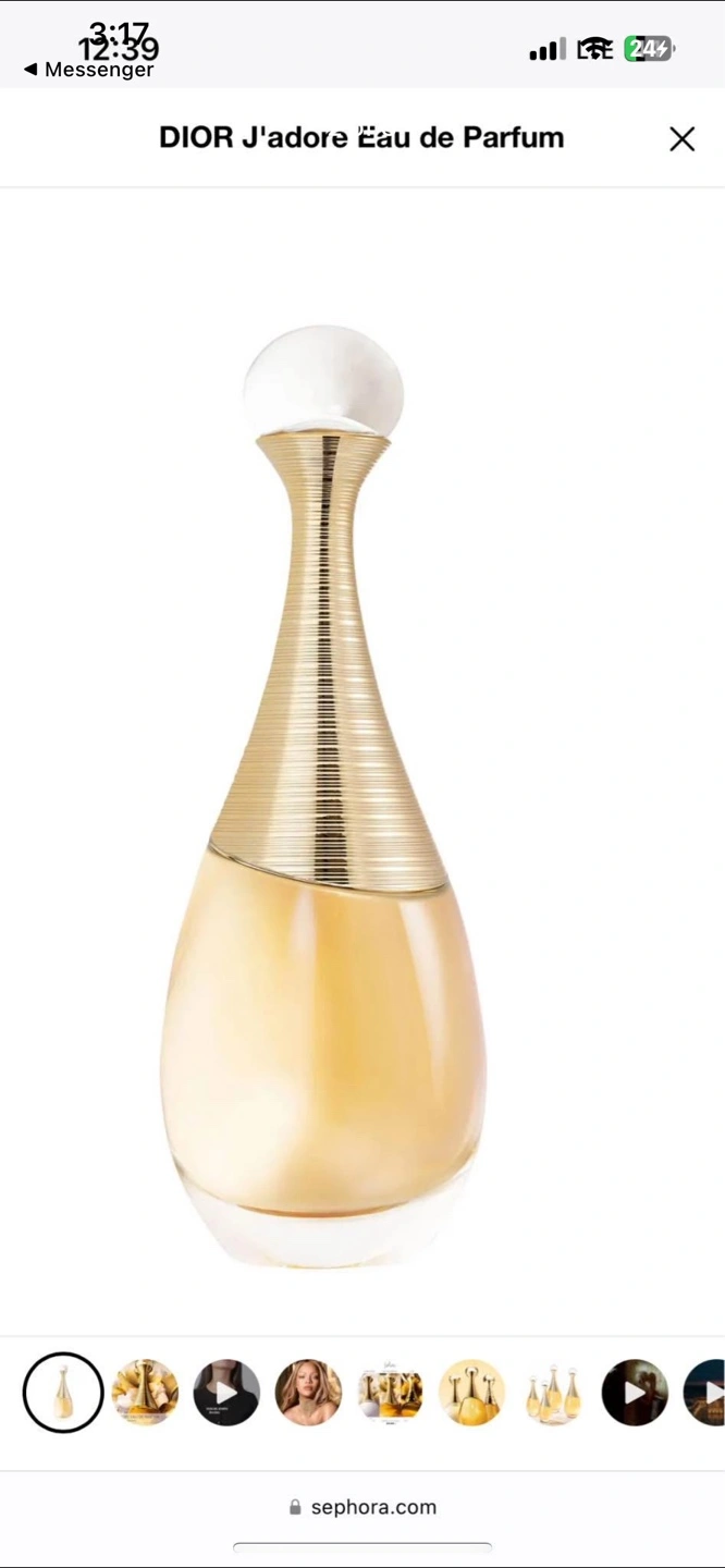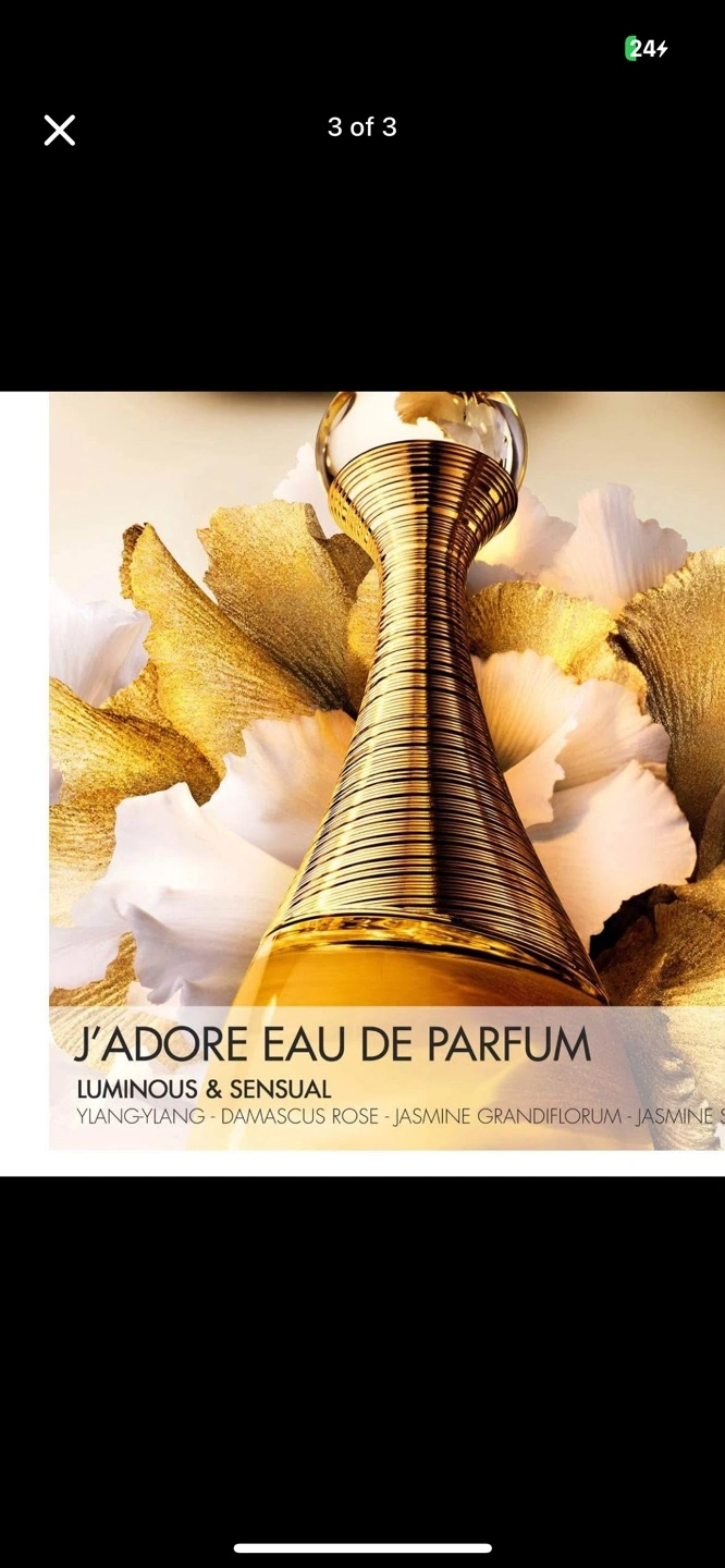 A lovely perfume bottle. Gold accents, pear-shaped. Enjoying this fragrance can be a great way to practice self-care and relaxation.