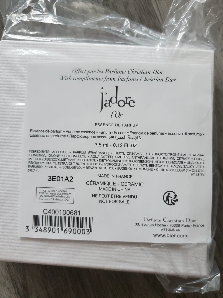 104This is a sample size bottle of Christian Dior J'adore L'Or perfume essence. It is 3.5 ml or 0.12 fl oz. unopened. Pick up near North York Centre Station.