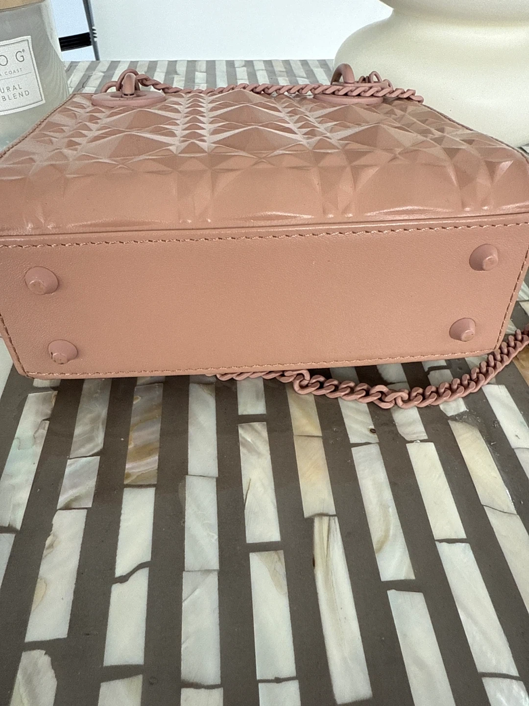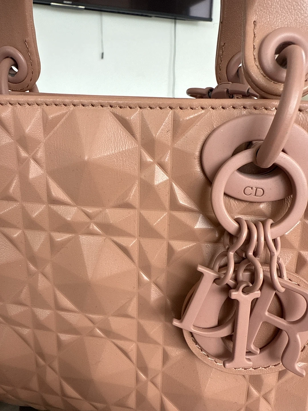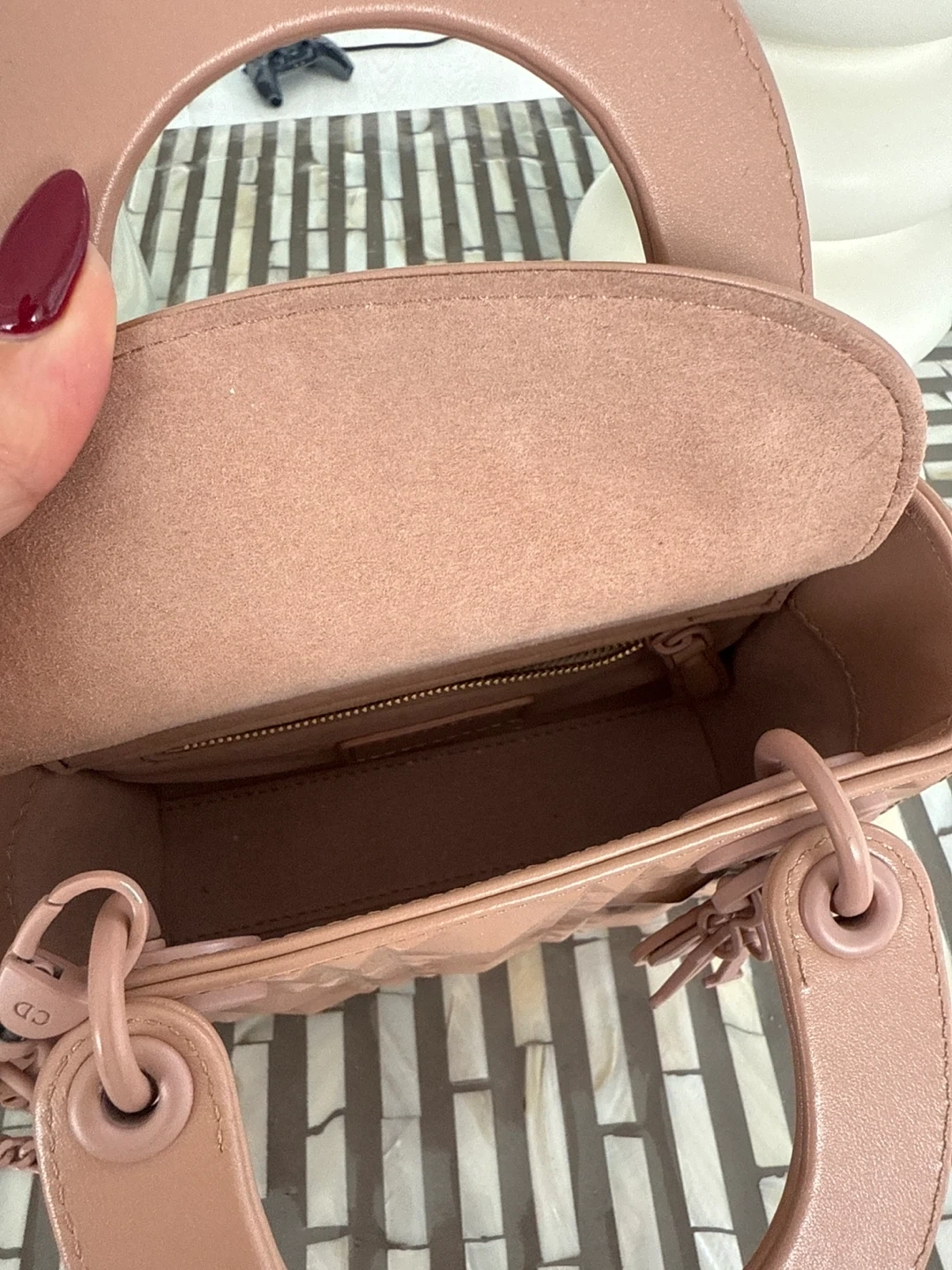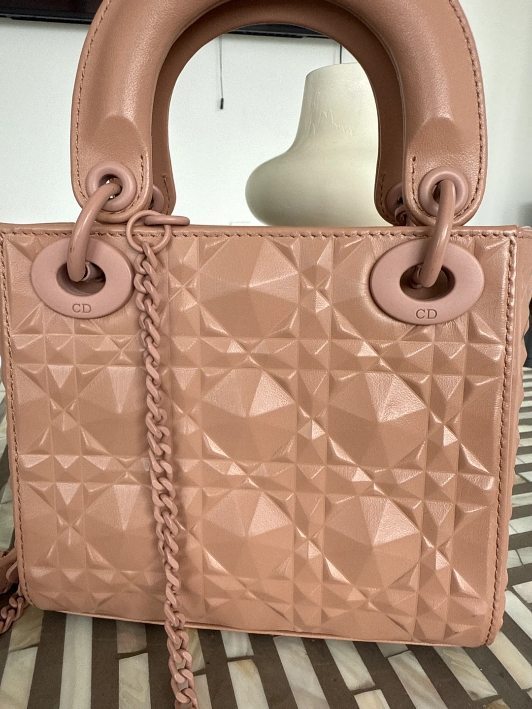 Selling a Mini Ultra Matte Lady Dior bag in a beautiful blush pink colour and the Diamond cannage motif in calfskin leather. It's in almost new condition and perfect for adding a touch of elegance to any outfit!