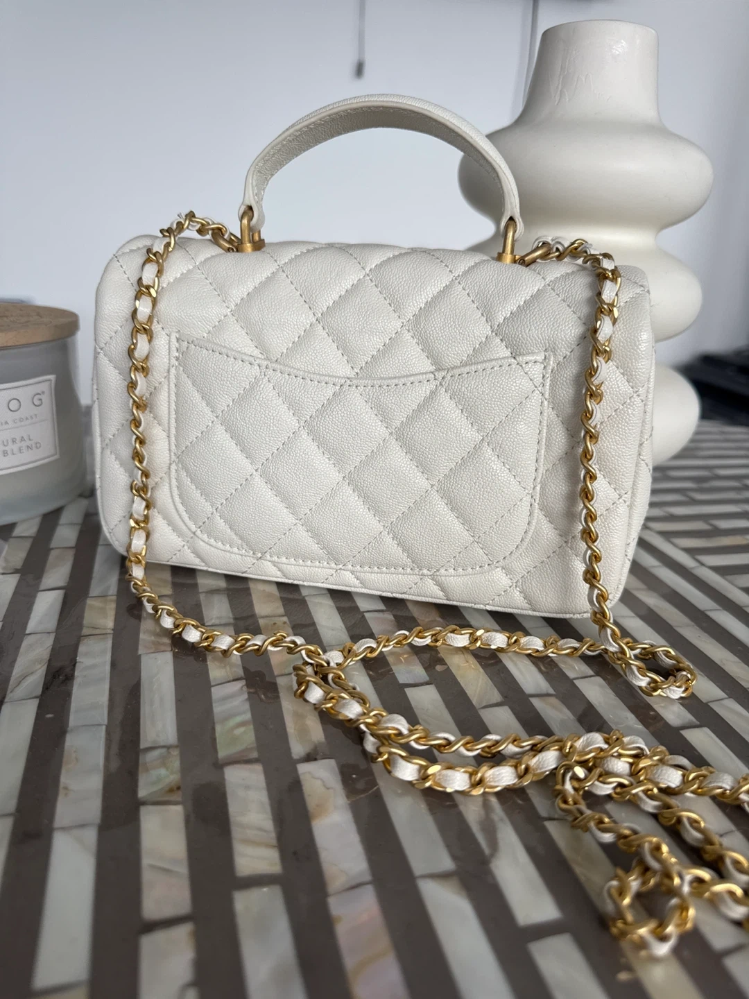 Chanel White Mini Flap Caviar Leather Bag with Top Handle