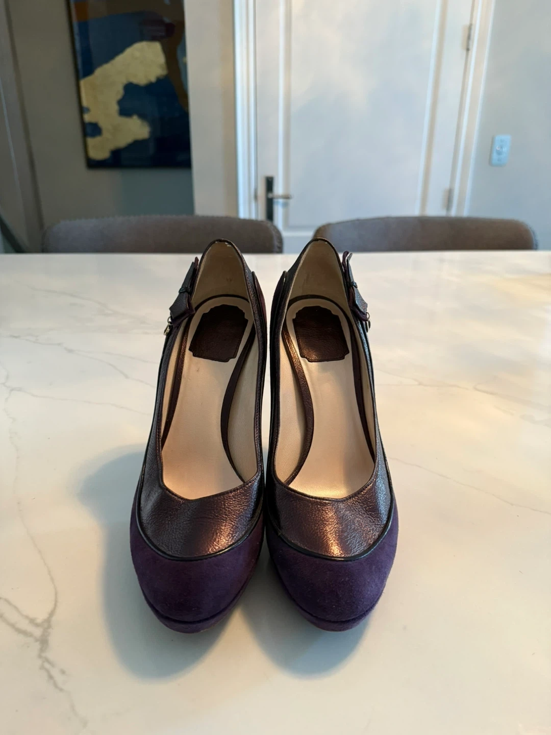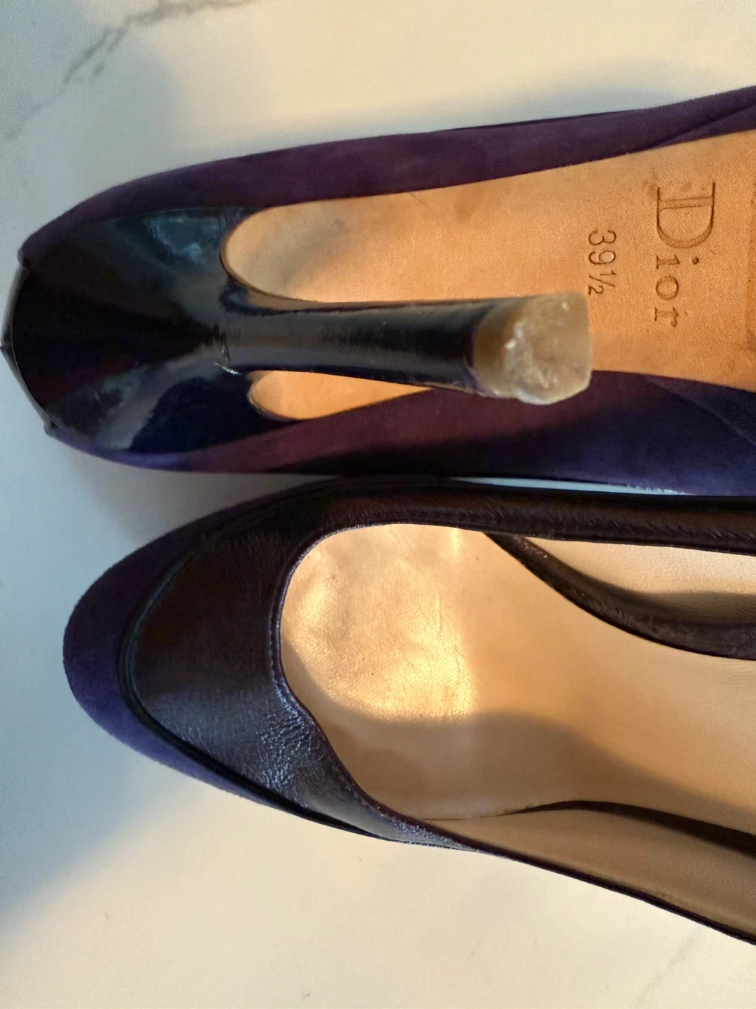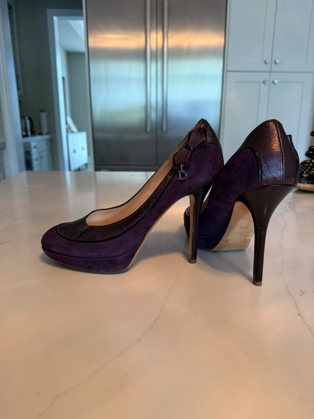 Selling a pair of Dior heels in a beautiful purple suede! They are a European size 39.5. They have some wear on the heel, as shown in the pictures.