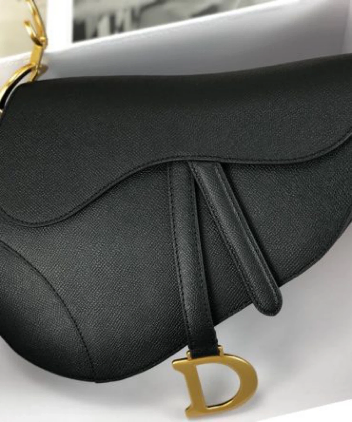 Selling a classic Dior Saddle Bag in black! This stylish bag features the iconic 'D' stirrup magnetic clasp and 'CD' signature on either side of the handle. It's a timeless piece to add to your collection!