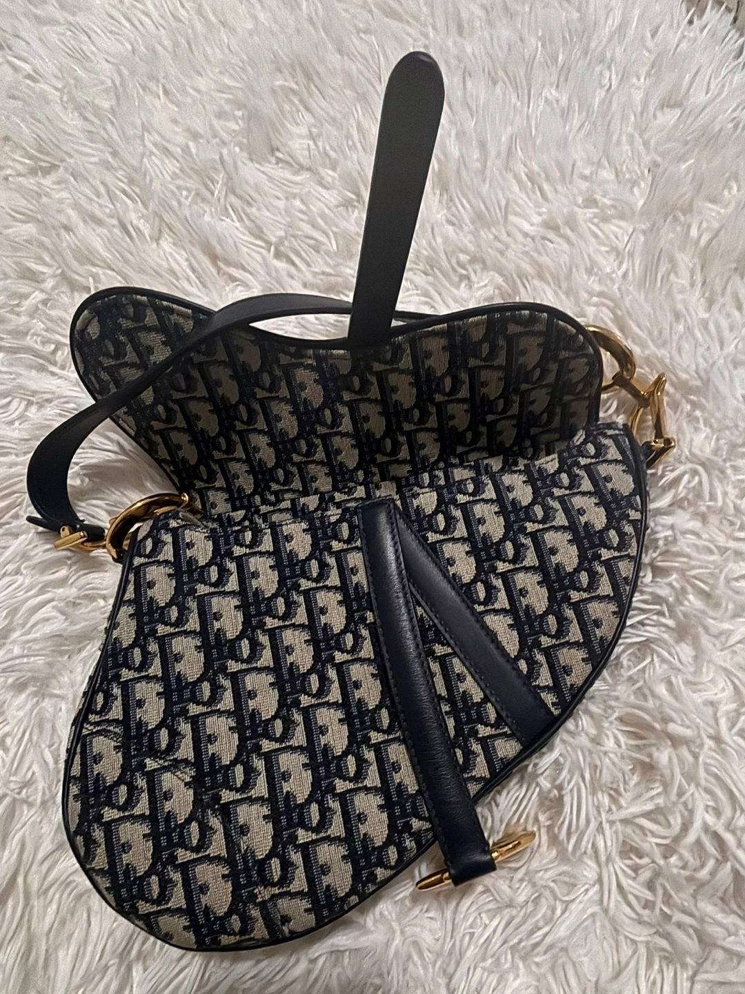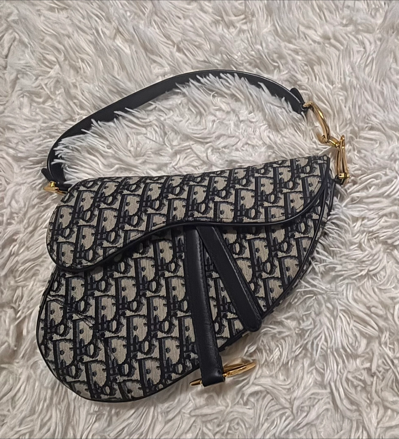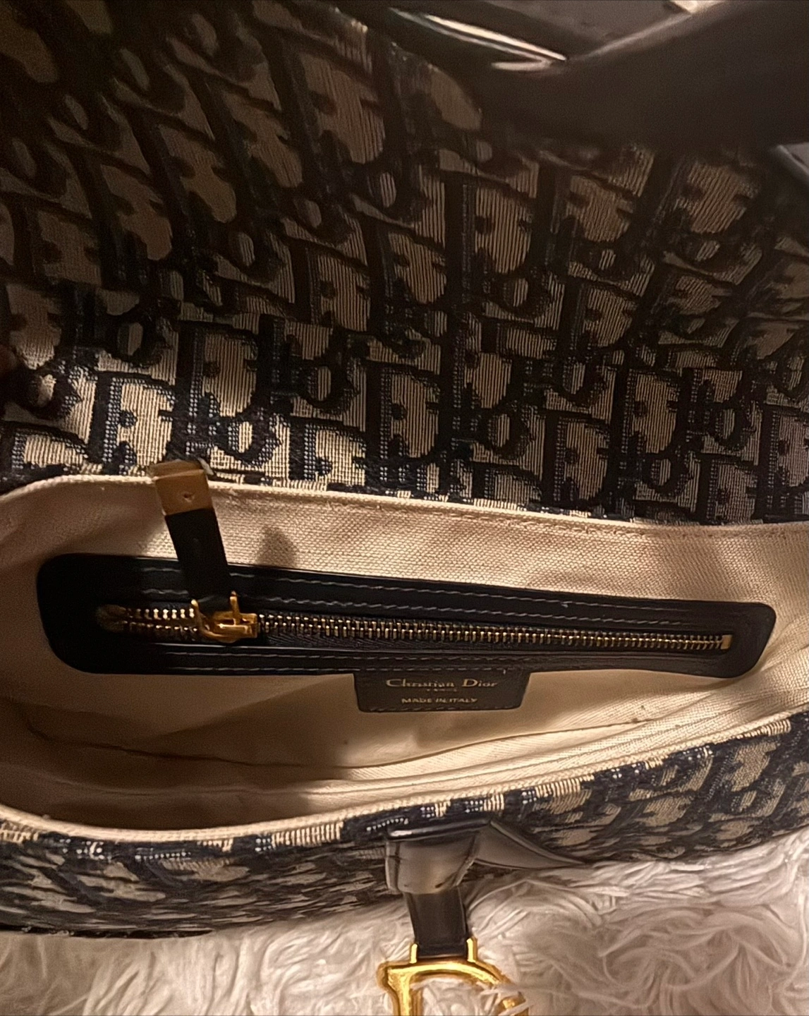 65Selling a Dior Saddle Bag with the iconic Dior Oblique canvas pattern. It's in great condition and a timeless piece to add to your collection. The interior features a zipper pocket. Don't miss out on this classic!