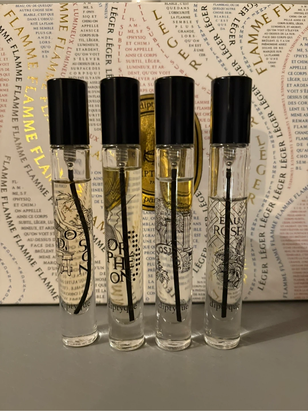 Do Son Eau de Parfum 7.5ml $25 Orpheon Eau de Parfum 7.5ml $25 Philosykos Eau de Parfum 7.5ml $25 Eau Rose Eau de Parfum 7.5ml $20 Slightly used