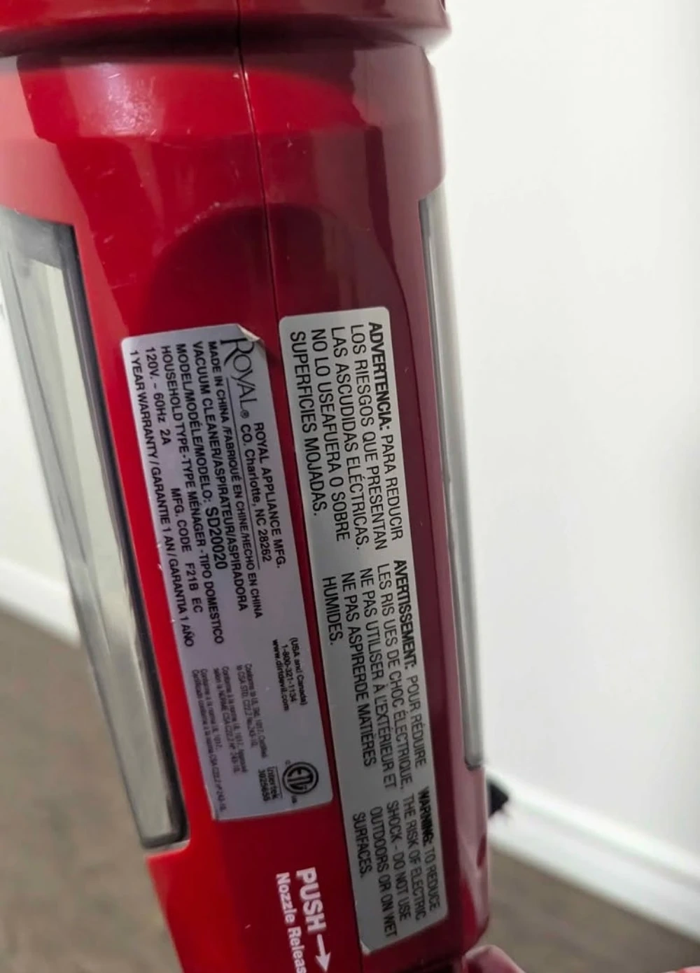 65Selling a Dirt Devil Vibe Quickpath vacuum cleaner. It's red and in good working condition. Model number is SD20020.