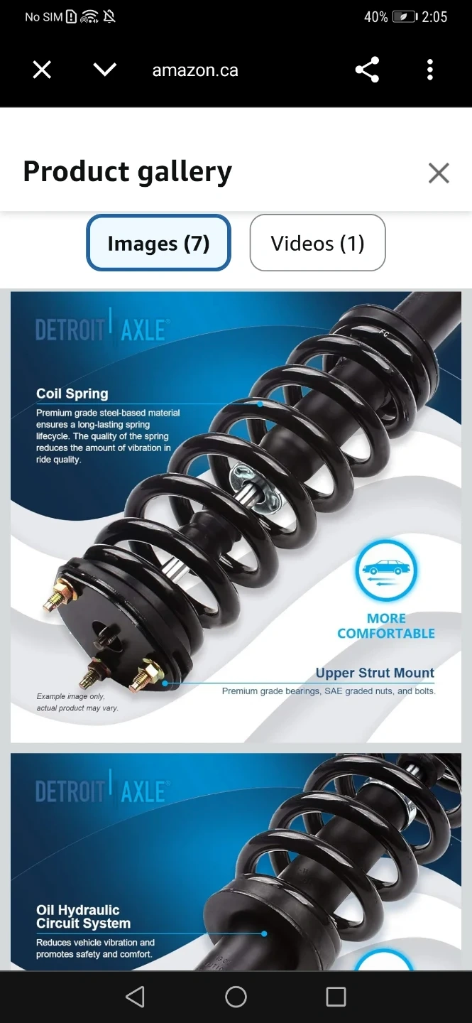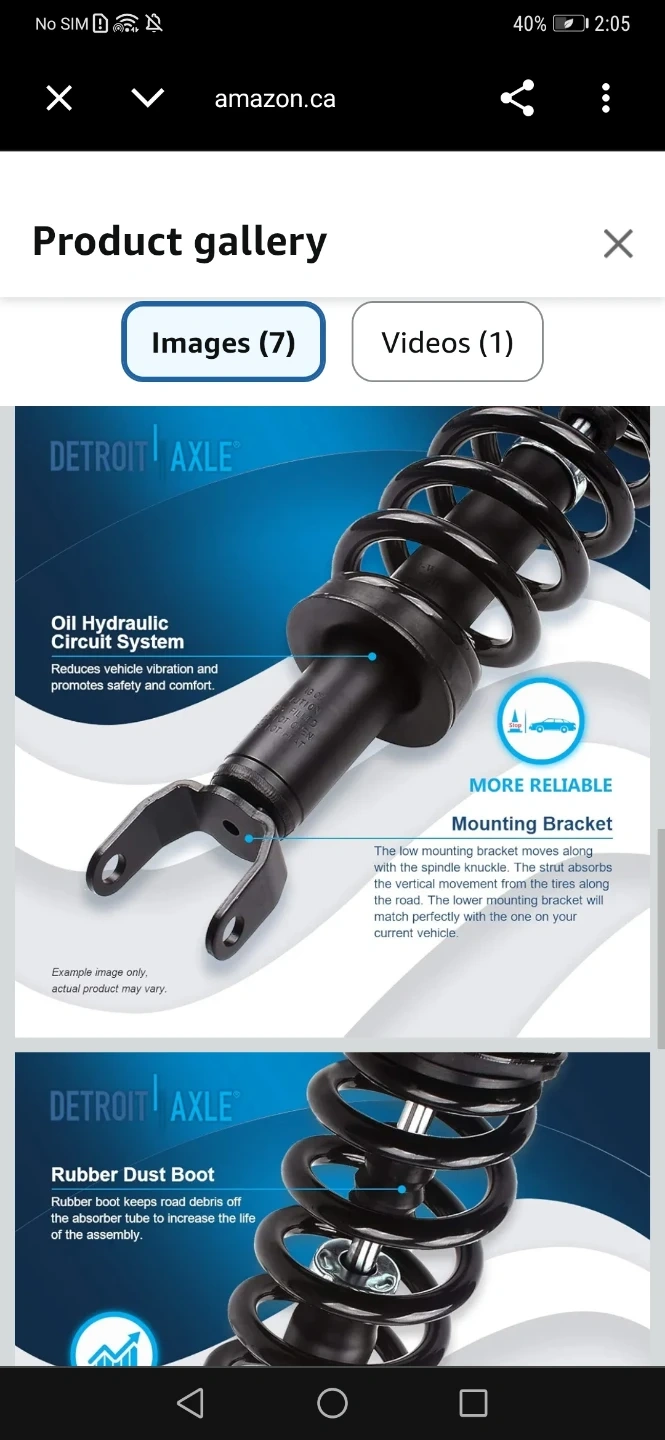 This is a pair of front complete struts for select Ford Fusion models. It includes a premium grade steel coil spring and an upper strut mount. The oil hydraulic circuit system reduces vehicle vibration and promotes safety and comfort. A rubber dust boot keeps road debris off the absorber tube.