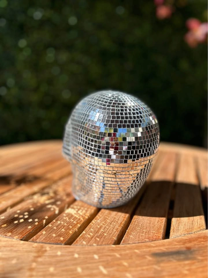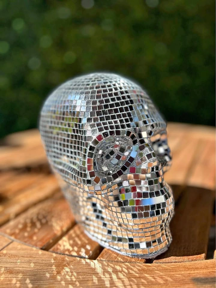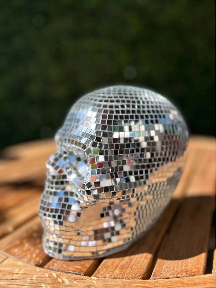 Silver disco skull 6.5” tall 7” long 4” wide