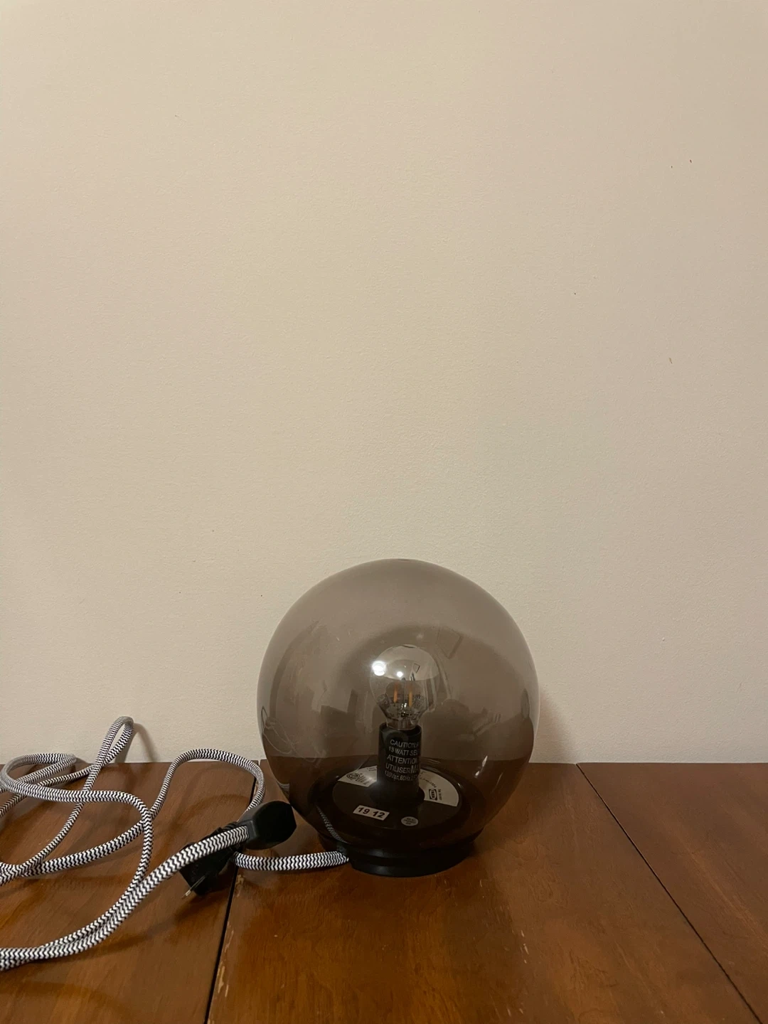 60IKEA Fado table lamp (17cm) in smoked glass. Discontinued model. Like new condition, no cracks or chips and works perfectly Comes with bulb. Simple, soft ambient lighting. Pick-up near Yonge&Clark. I can also meet at Finch, Eglinton, Rosedale stations if needed.