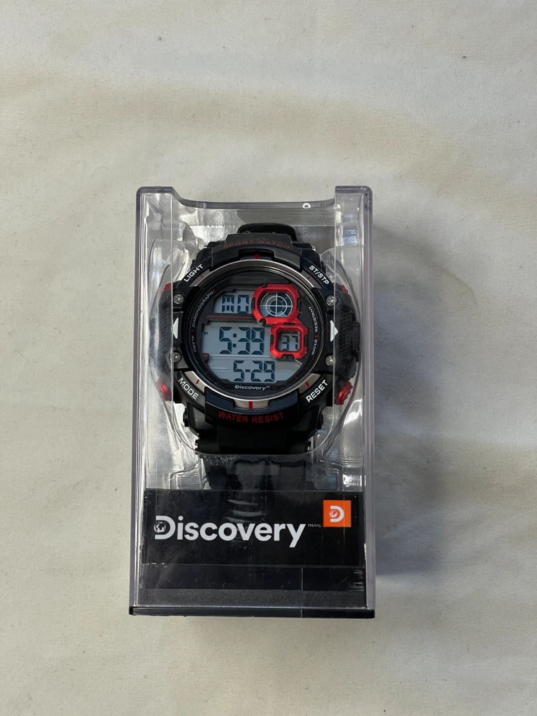 10Selling a brand new Discovery digital watch that's still in its original packaging! It's a stylish and functional watch with a water-resistant design. Perfect for everyday wear or outdoor adventures