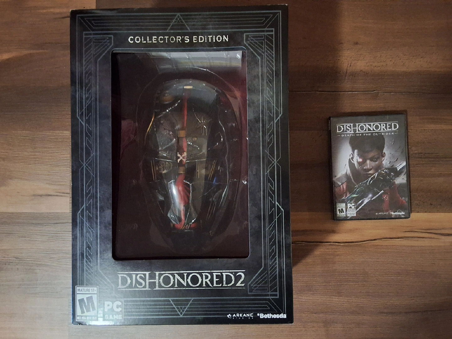 65Selling a Dishonored 2 Collector's Edition for PC. It includes the game Dishonored: Death of the Outsider. Comes in the original box! You get all its games and DLCs in Dishonored series. Dishonored 1 + 2 + DLC !! all in package. PC/NEW] •Dishonored complete series (dishonored 2 collector's edition + dlc) : $300