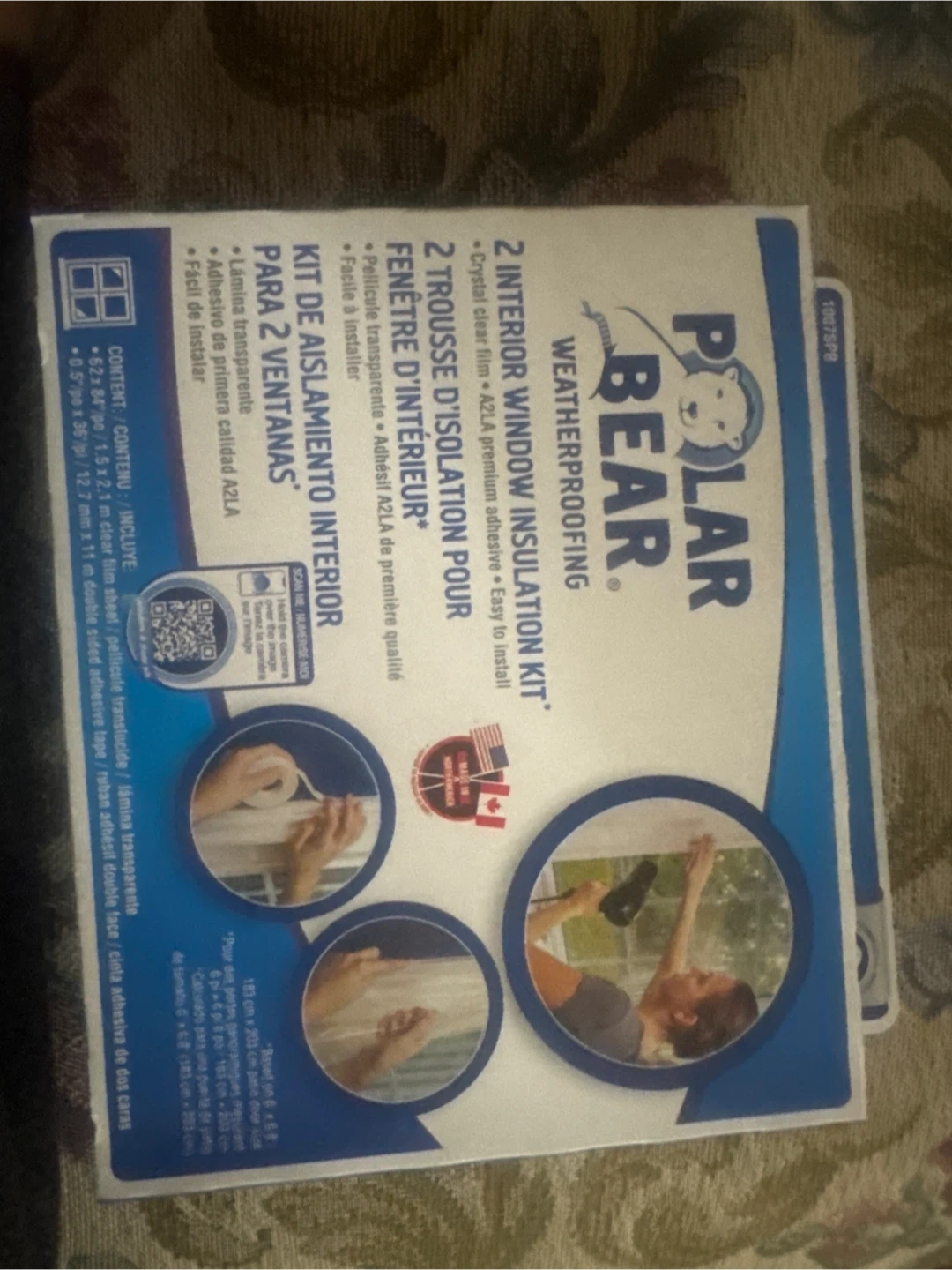 This Polar Bear Weatherproofing kit is for two interior windows. It includes crystal clear film and adhesive tape for installation. It's great for sealing out drafts and keeping your home warm!