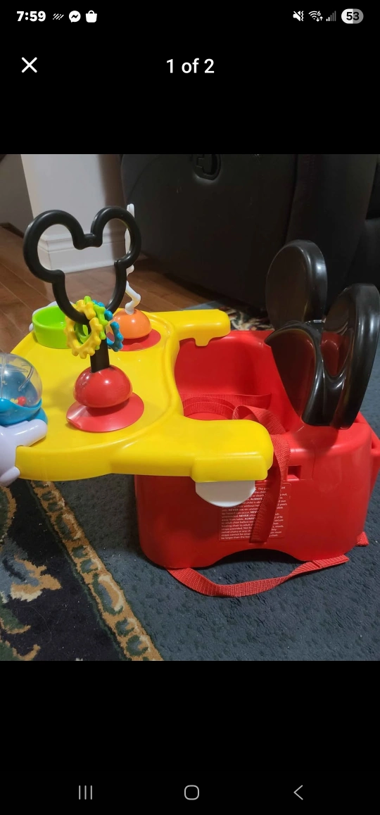 Selling a Disney Baby Mickey Mouse baby seat. It's in great shape and ready for a new home! Perfect for little ones learning to eat and explore.