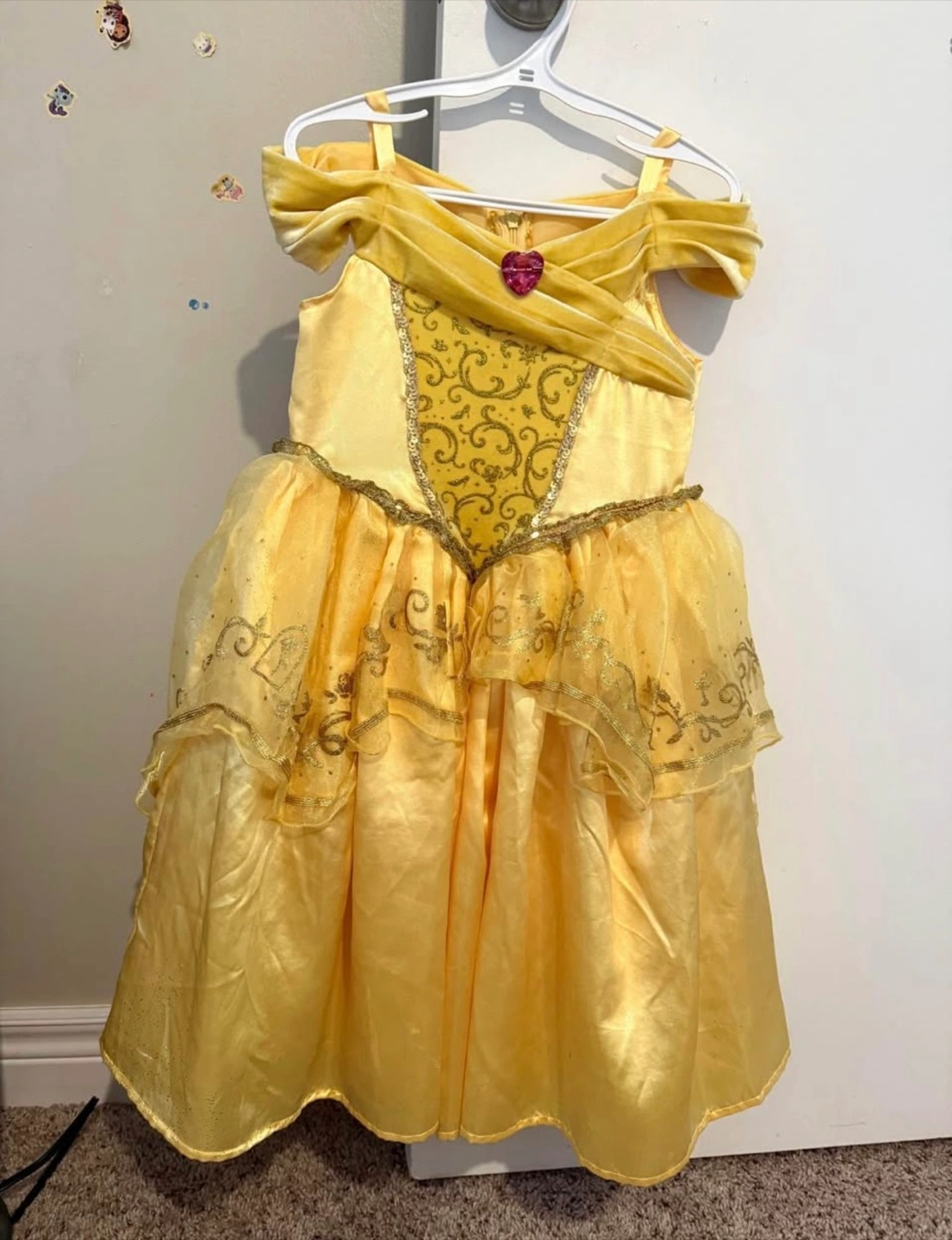 A lovely Belle princess dress! Perfect for dress-up or a costume party. Features a beautiful yellow colour and design.