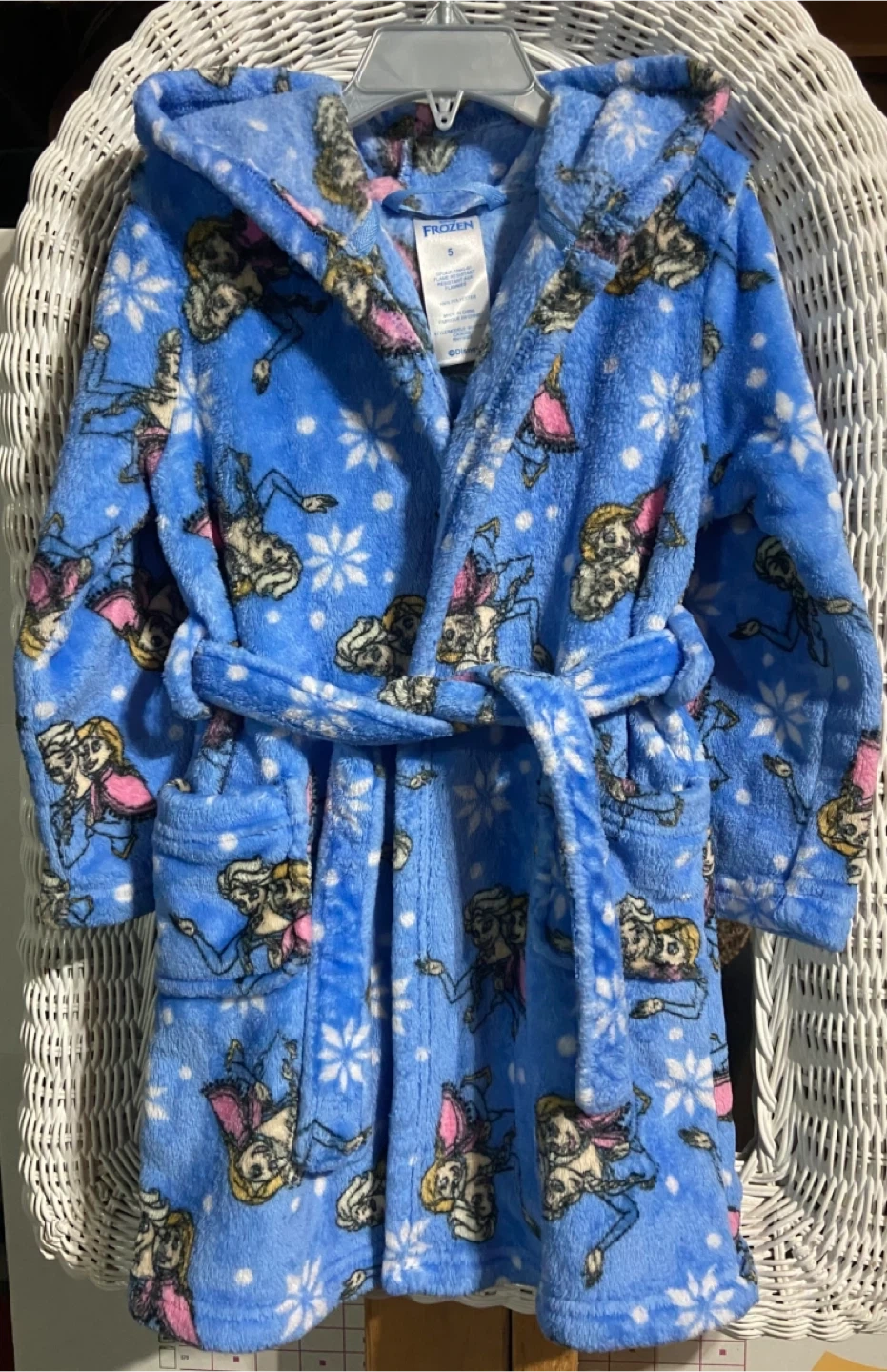 1000+Keep your little one cozy with this adorable Disney Frozen bath robe! It features a fun Elsa pattern on a soft, blue, 100% polyester material. The robe is size 5 and in great condition.