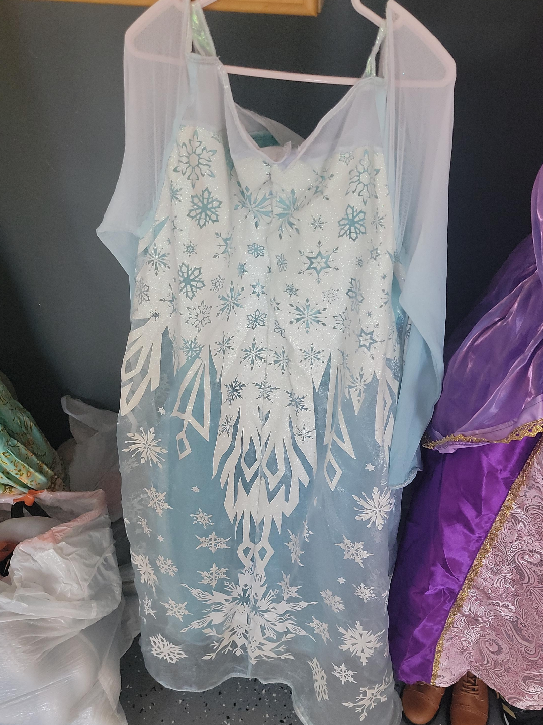 Selling a cute Elsa dress from Disney's Frozen! It features a light blue colour with snowflake designs. Perfect for dress-up or Halloween!