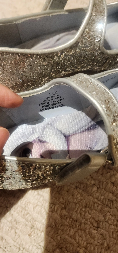 Adorable Disney Frozen silver glitter shoes from H&M! The size is EUR 30, which is approximately a US/Canadian size 12.5. Perfect for your little one who loves Elsa!