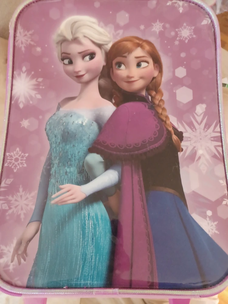 35Selling a used Disney Frozen rolling suitcase! Perfect for little ones who love Elsa and Anna. The suitcase features a retractable handle and rolling wheels, making it easy for kids to pull along. It's pink with a picture of Elsa and Anna on the front