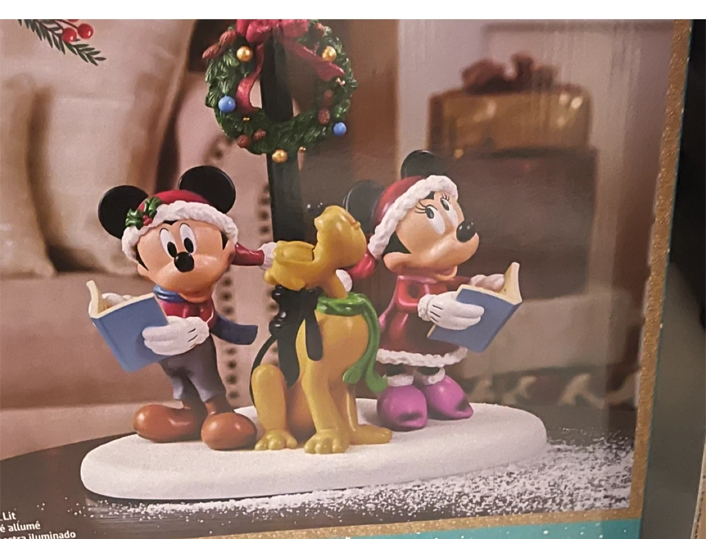 10Add some holiday cheer with this adorable Disney Holiday Carolers figurine! It features Mickey, Minnie, and Pluto caroling around a lamp post with lights and music. It's battery operated and has a timer (6 hours on, 18 hours off). The dimensions are approximately 16.3"H x 12.59" x 7.87". It also comes with the original box!