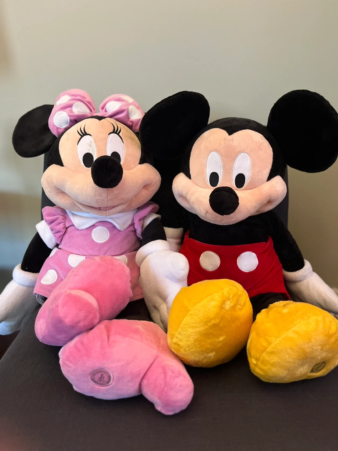 $35 each for large Mickey and Minnie $40 together for the set of 4. Selling a collection of adorable Disney plush toys featuring Mickey and Minnie Mouse! These are in great condition and ready to bring joy to a new home. Perfect for Disney fans of all ages