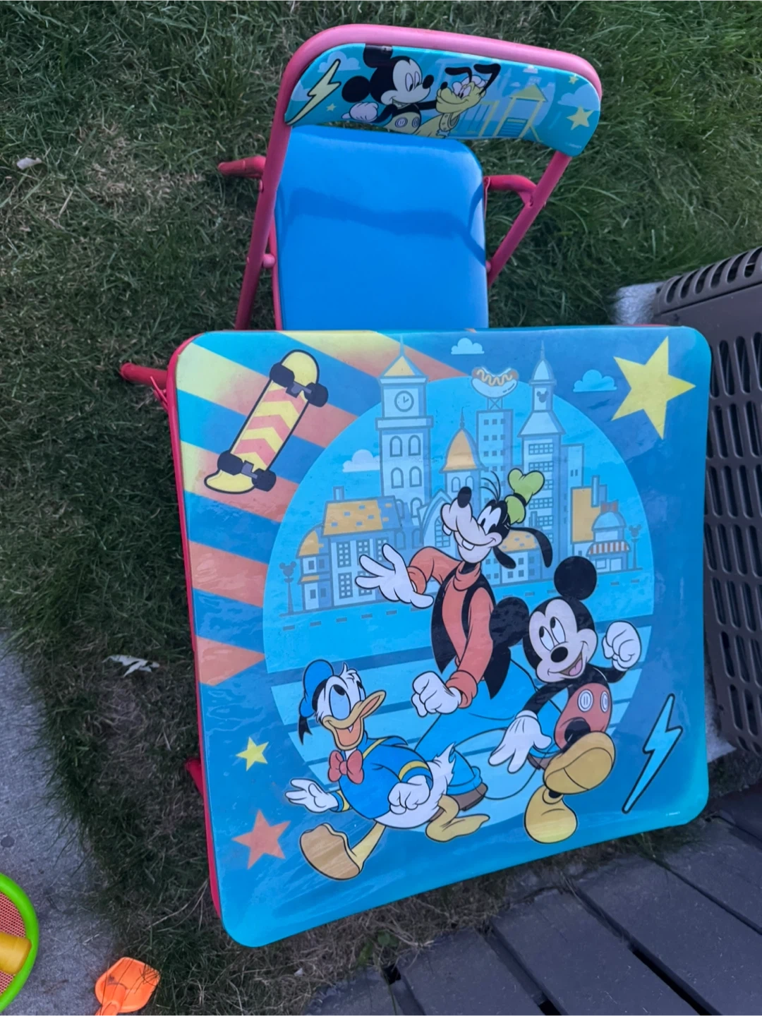 60This adorable Disney Mickey Mouse table and chair set is perfect for your little one! The table features a colourful design with Mickey, Goofy, and Donald Duck. It's a great set for playtime, crafts, or snack time