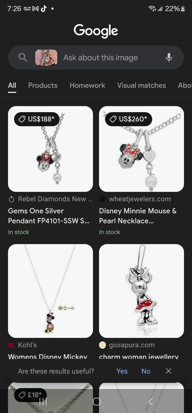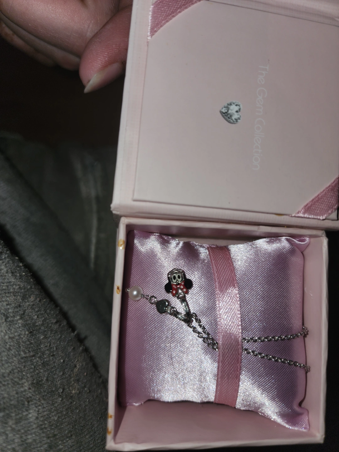 55Adorable Minnie Mouse necklace. Features a pearl and Minnie charm. Silver chain. Comes in original box. The Gem Collection.