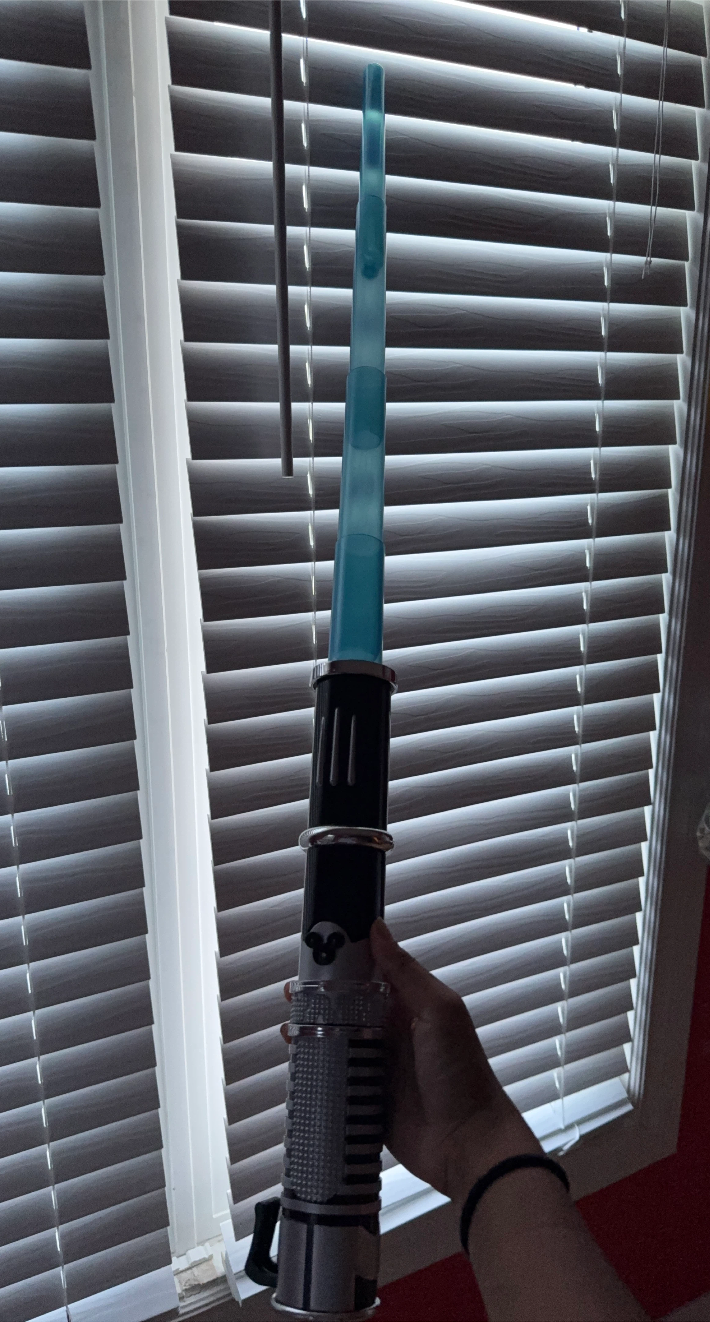 Selling a Disney Parks Star Wars lightsaber! It features a blue blade and a detailed hilt. Perfect for any Star Wars fan! Sword lights up and has sounds when batteries are inserted, no batteries included!