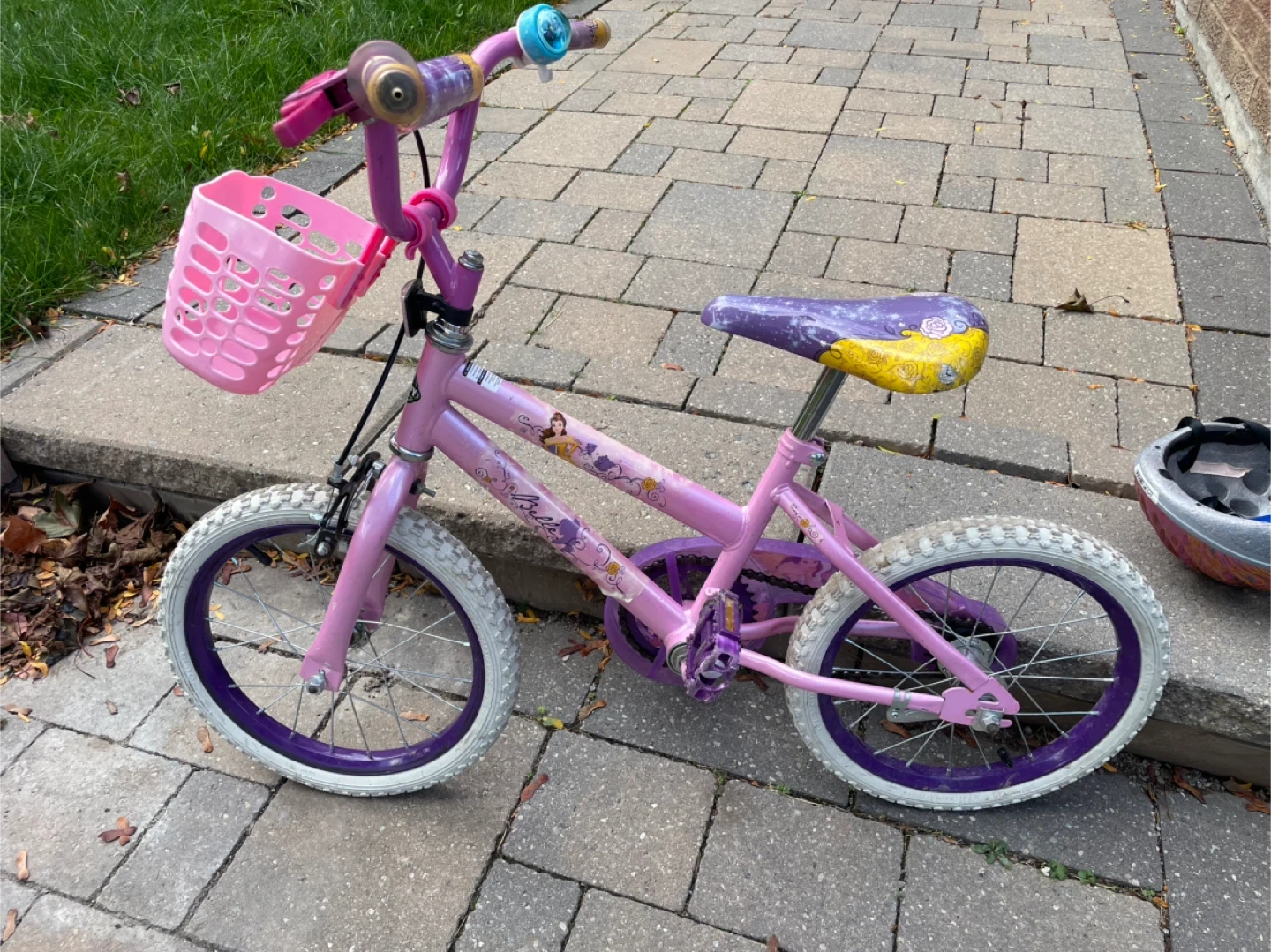 It's a 16inch bike in pink and purple, perfect for kids learning to ride.