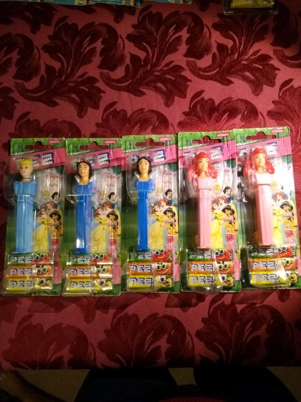 15Disney Princesses Pez Dispensers. Collectible. Still in original packaging. I do NOT recommend eating the candy - it is definitely expired. $2 each -Cinderella: introduced in 2013 - Snow White: introduced in 2007 - Ariel: introduced in 2006 (Prices based of Pez Collectors Website). See my other ads for other Pez. Smoke free home. Pick up near Banwell and the Expressway.