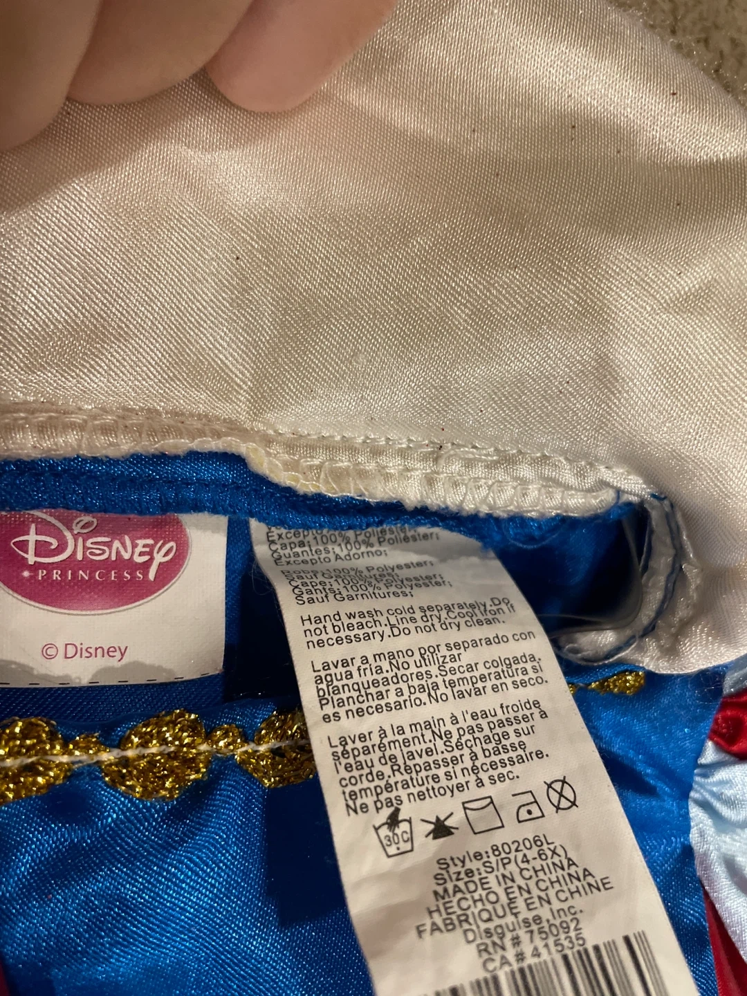 10Selling a cute Disney Princess Snow White costume! It's in great condition and ready for dress-up or Halloween. - Size: S (4-6X)