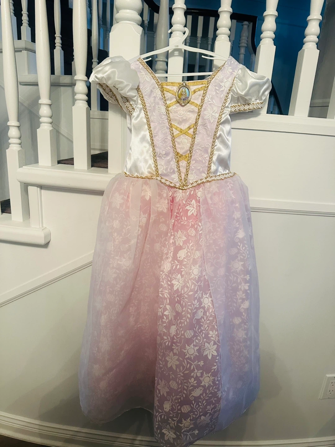 60Selling a cute Disney Rapunzel dress, perfect for dress-up or a costume party! It comes with a matching headband to complete the look. The dress is in great condition and ready for a new home