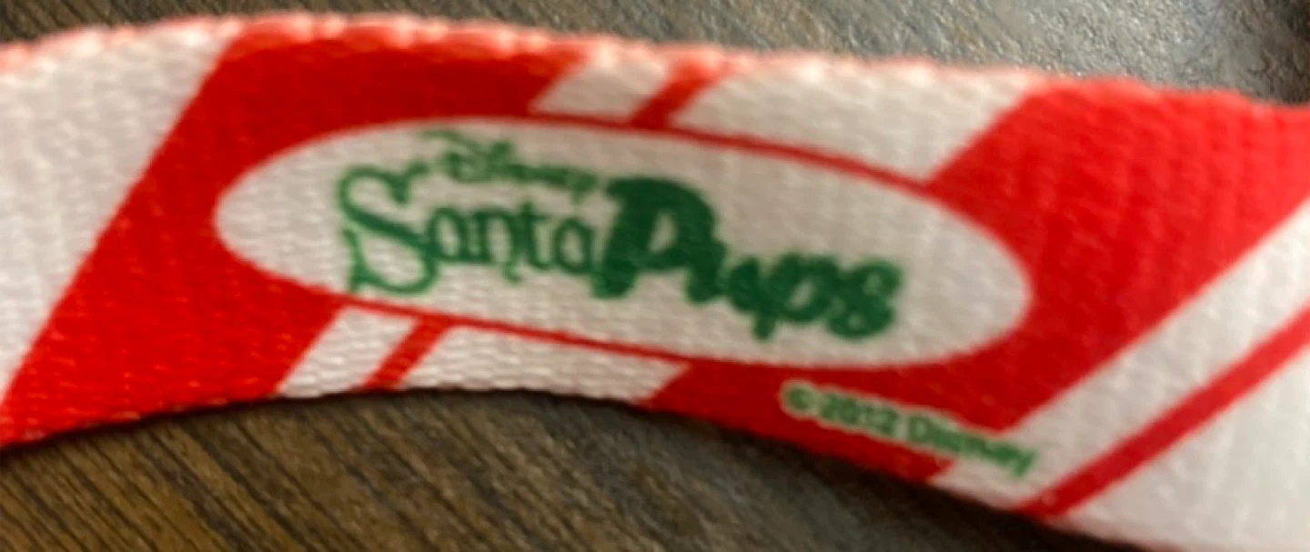 Selling a Disney Santa Pups dog leash and collar set! It features a cute red and white candy cane stripe design. Perfect for the holidays!