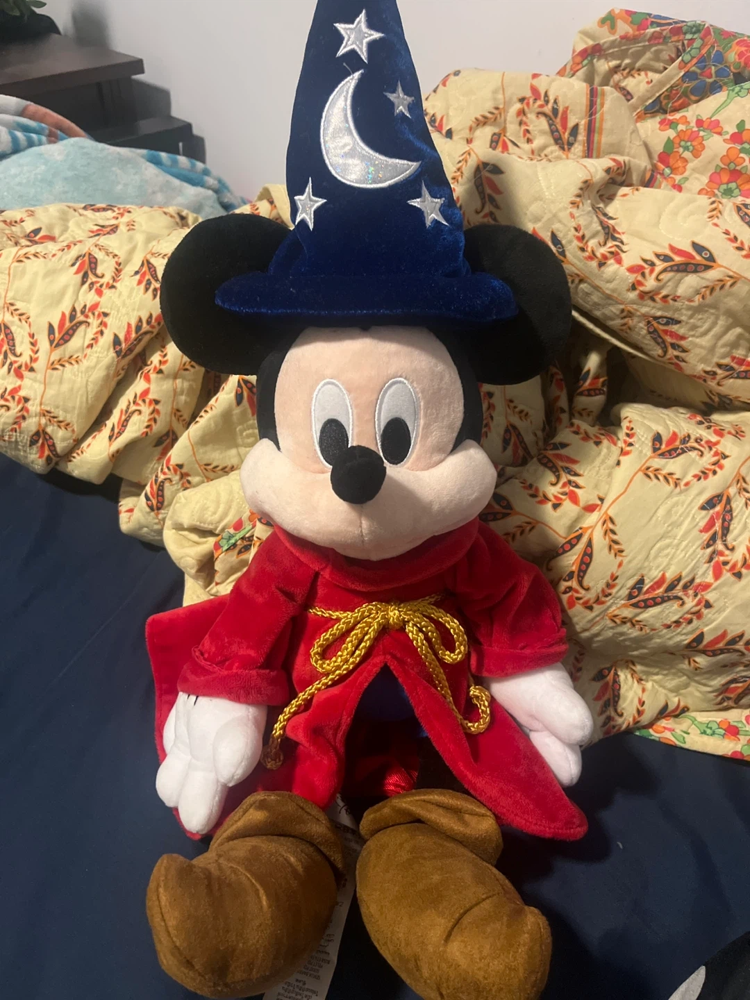 10Selling a cute Sorcerer Mickey Mouse plush! He's wearing his iconic blue hat with a moon and stars, and a red robe tied with a gold rope. Perfect for any Disney fan or collector! Bought this at the Disney shop Orlando airport Open for offers I bought this for (40$)