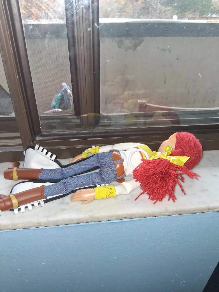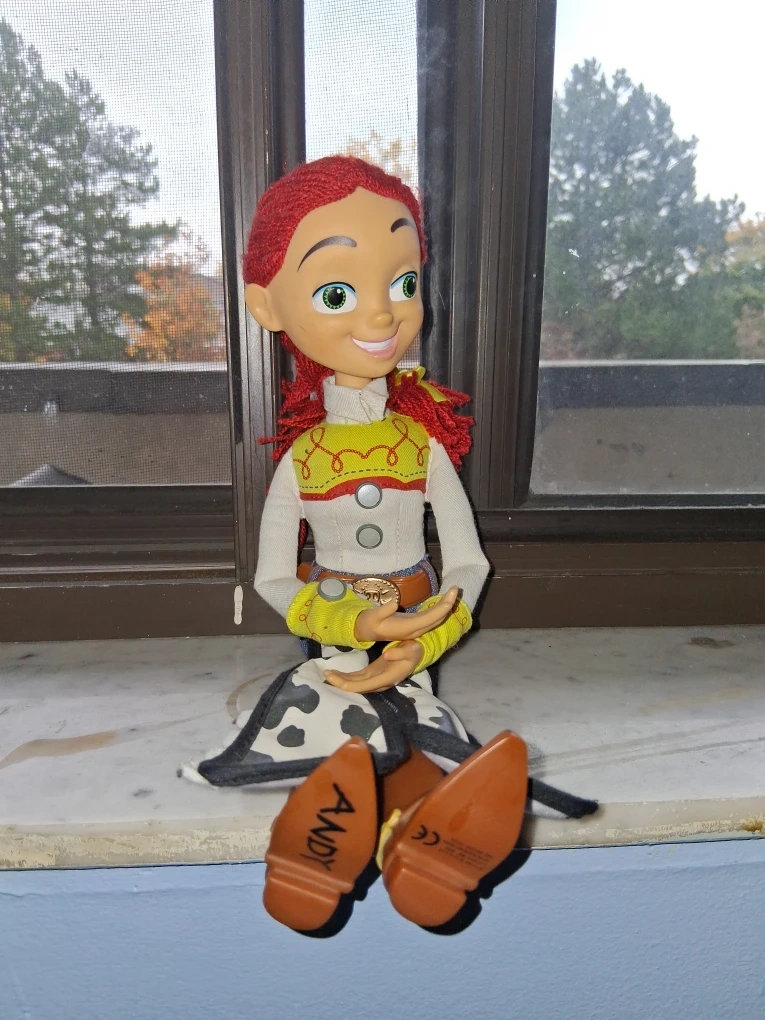 493Howdy, partner! I'm selling a Jessie doll from Toy Story. She's in great shape and ready for a new home. She has her signature outfit and red yarn hair. This doll is perfect for any Toy Story fan! Add batteries and pull her string to hear her phases.